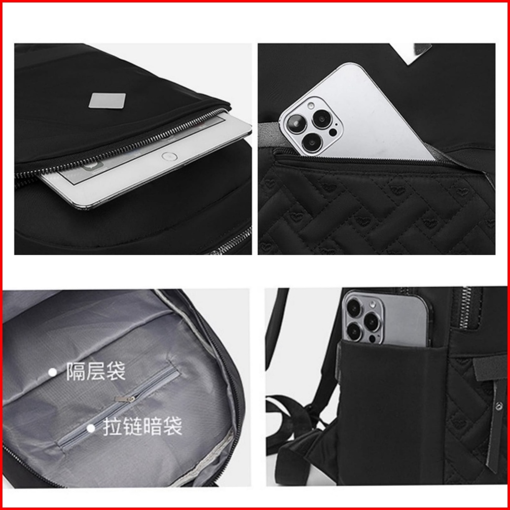 Tas Ransel Wanita Slot Laptop Anti Air Hitam Statin Backpack Besar Punggung Sekolah Kuliah Gendong Kerja Cewek Korea Rem