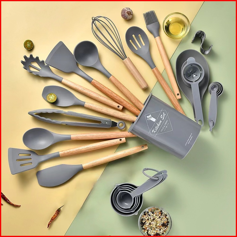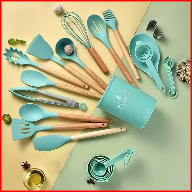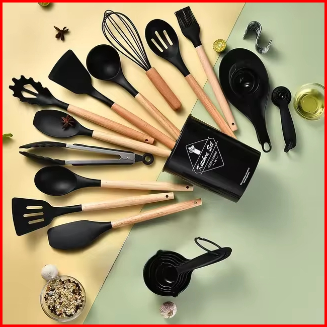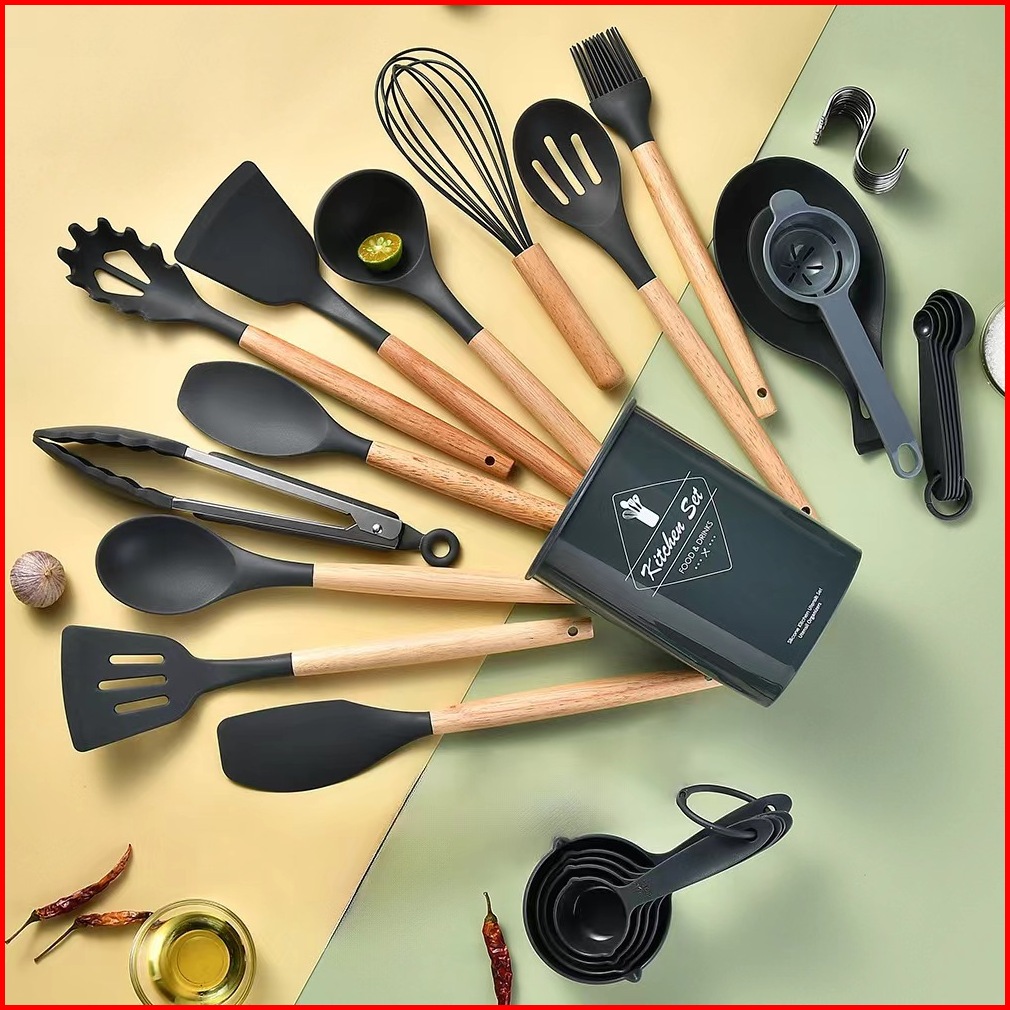 Spatula Silicone Set 17 Pcs Sutil Silikon Alat Masak Utensil Premium Kitchen Full Set Alat Masak Tumis Goreng Pengocok T
