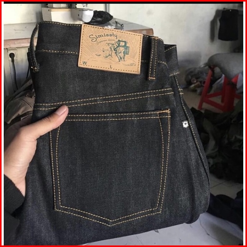 Celana Simissty Denim. Dark Blue Black Indigo 15.7 Oz. Shellstich Non 16 Oz Selvedge