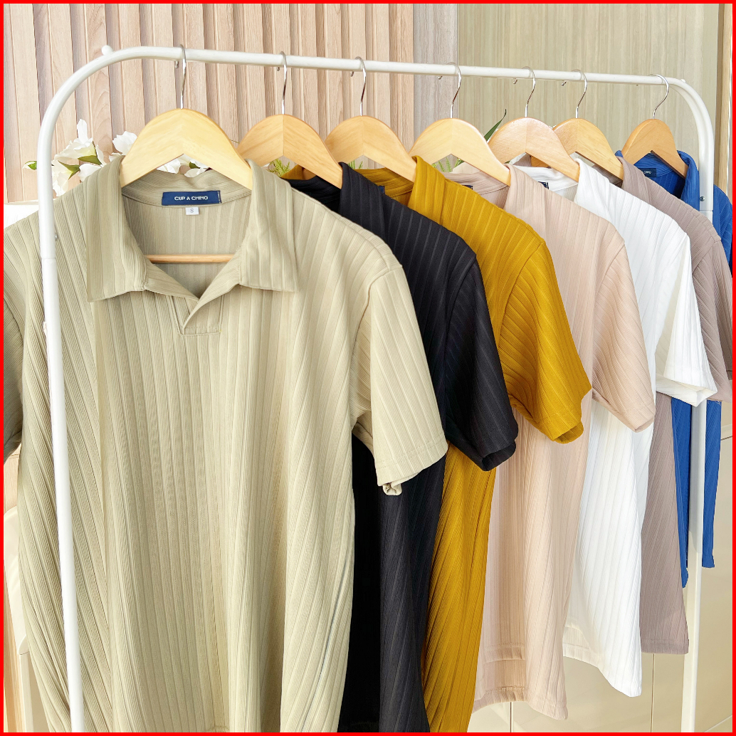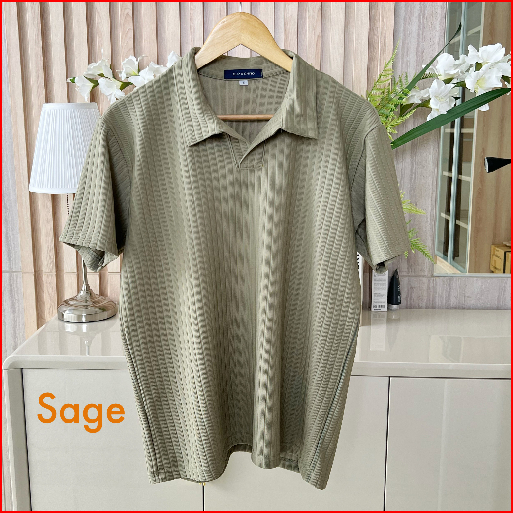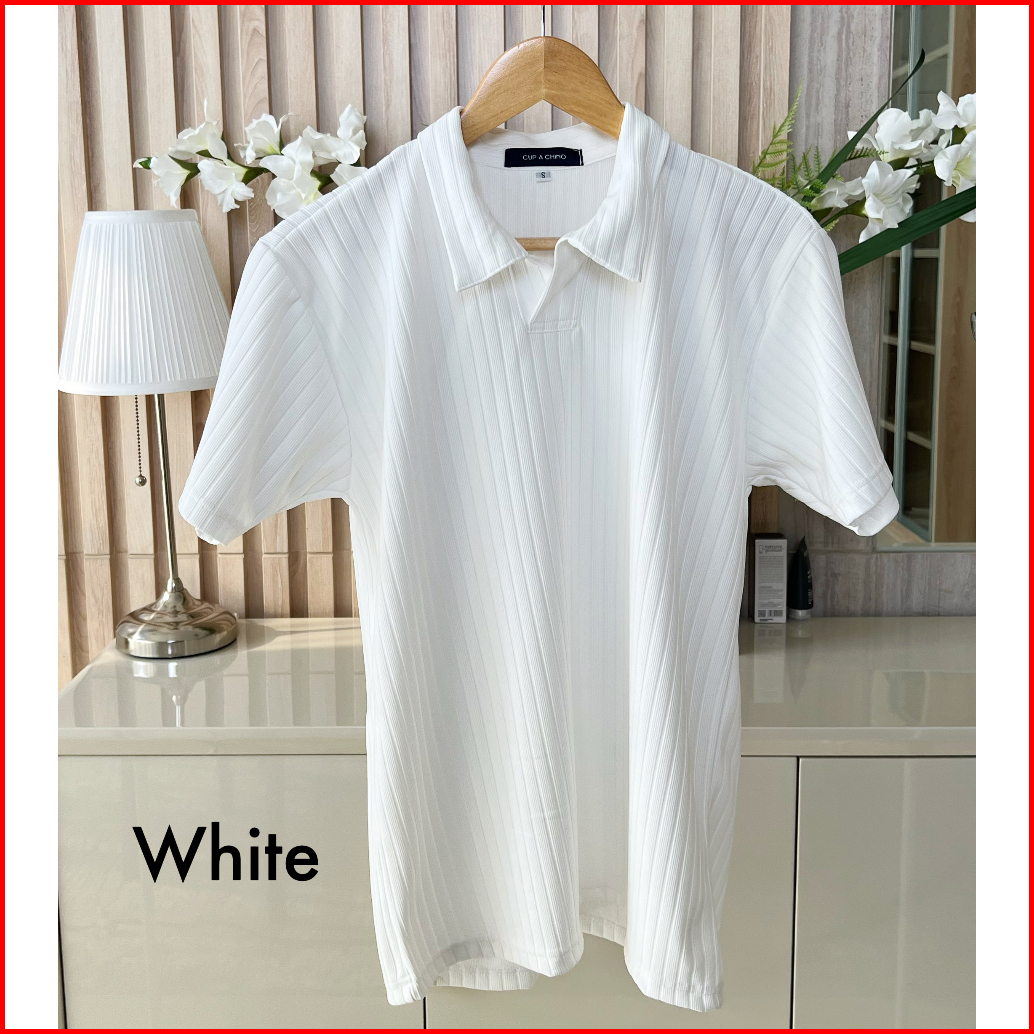 Korean Knit Baju Polo Shirt Pria Salur Besar Dengan Cutting Slim Fit