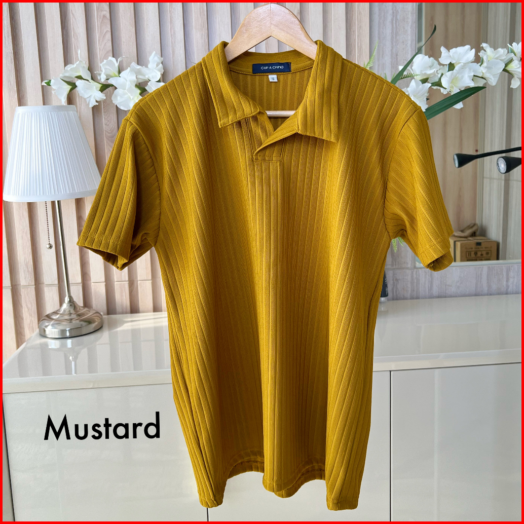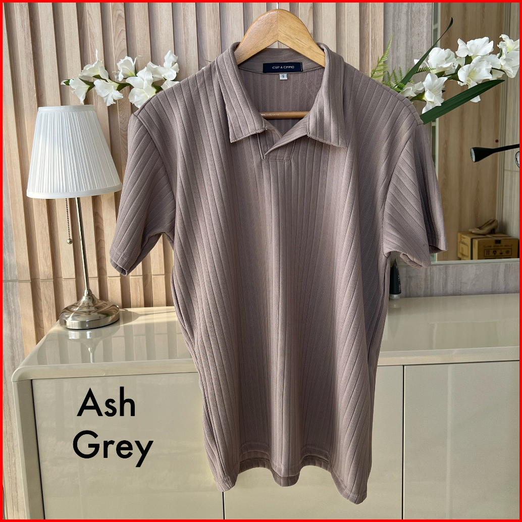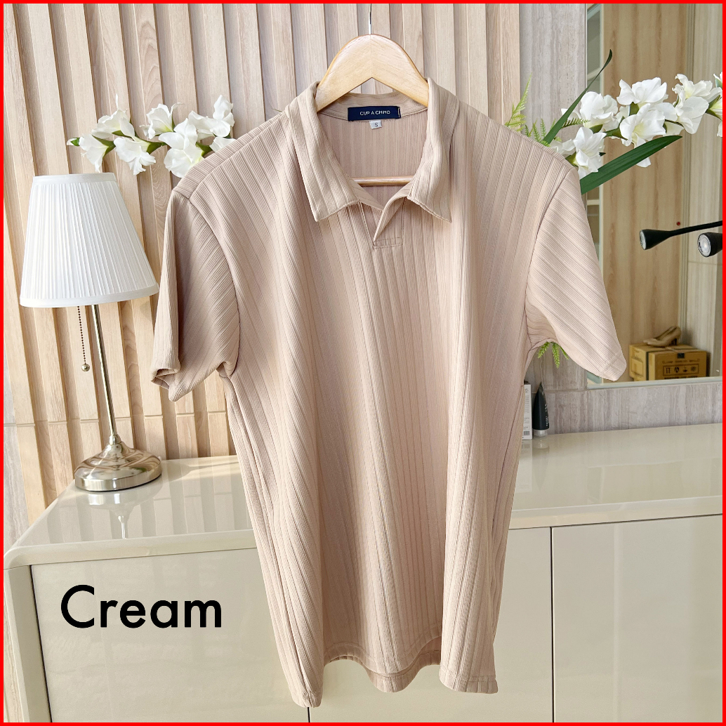 Korean Knit Baju Polo Shirt Pria Salur Besar Dengan Cutting Slim Fit