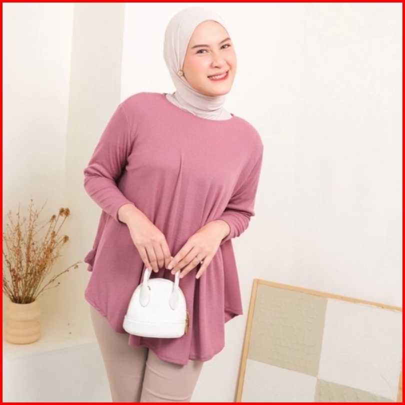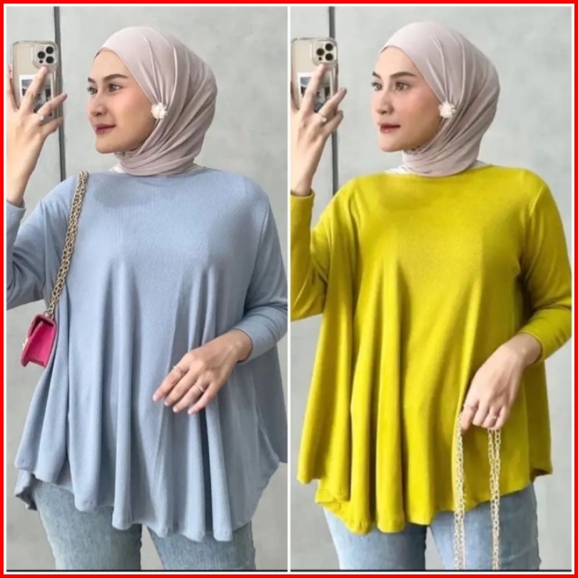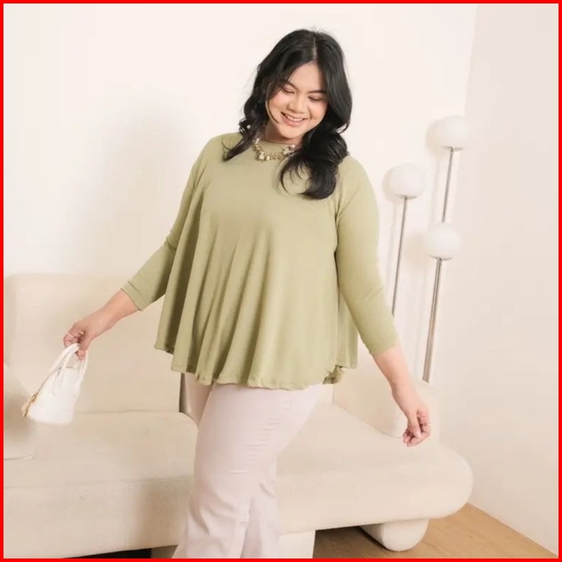 Atasan Ollvia Blouse Wanita Korea Kaos Zaeca Knit Rib Premium Besar Jumbo Polos Syle Kekinian
