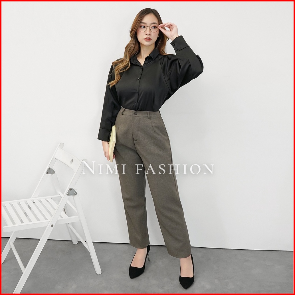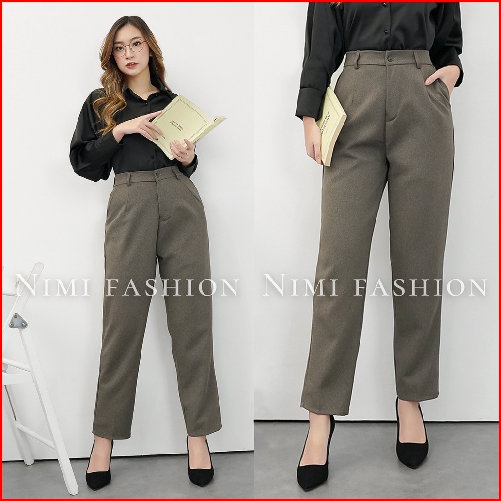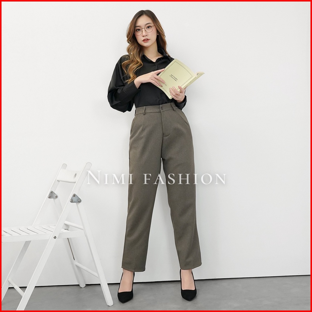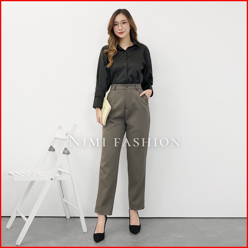 Nimi - Celana Kerja Wanita Kantor Highwaist Pinggang Karet Belakang