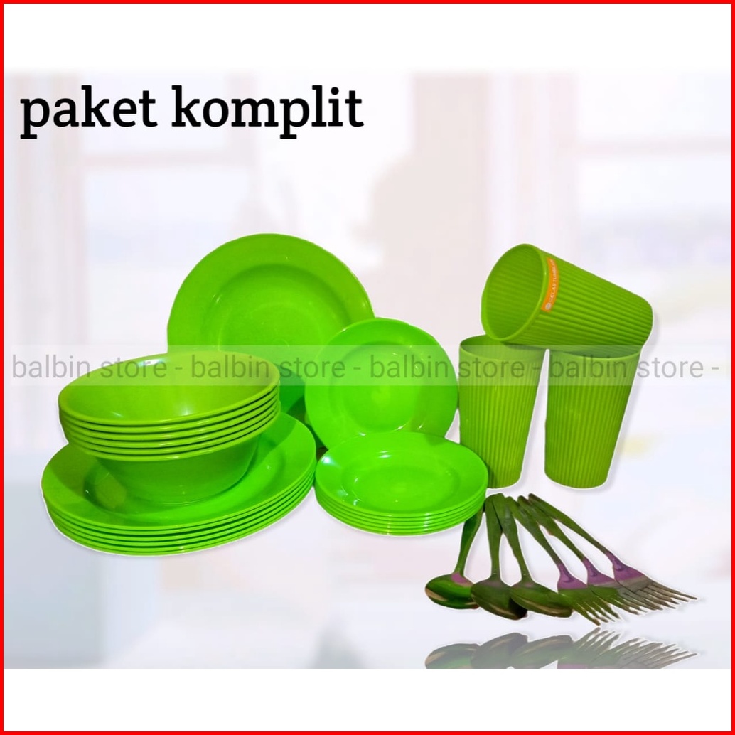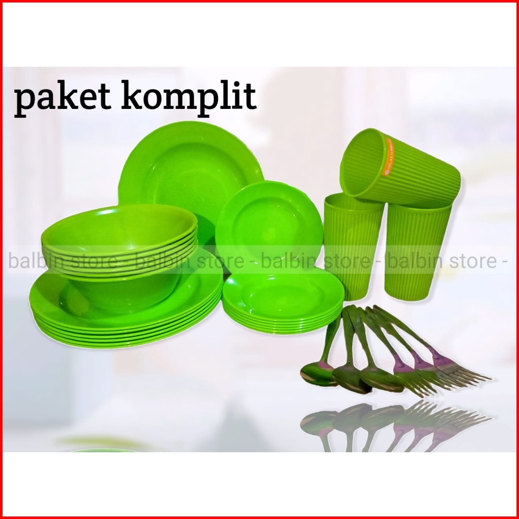 Balbin - Promo Satu Set Isi 18.pcs Peralatan Makan P-109 - Perlengkapan Makan - Peralatan Makan Warna Hijau - Paket Komp