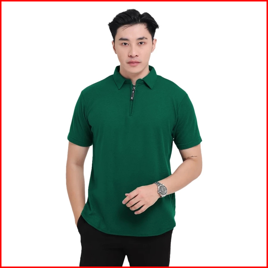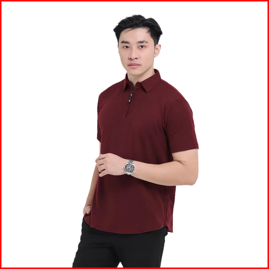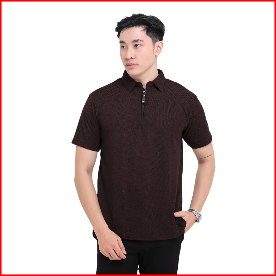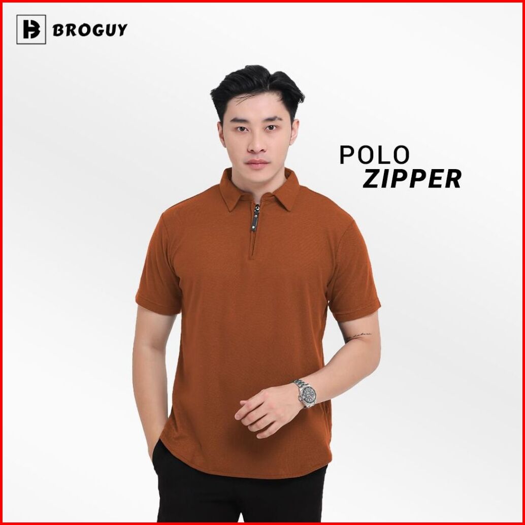 Broguy Kaos Polo Shirt Pria Kerah Lengan Pendek Zipper - Light Brown