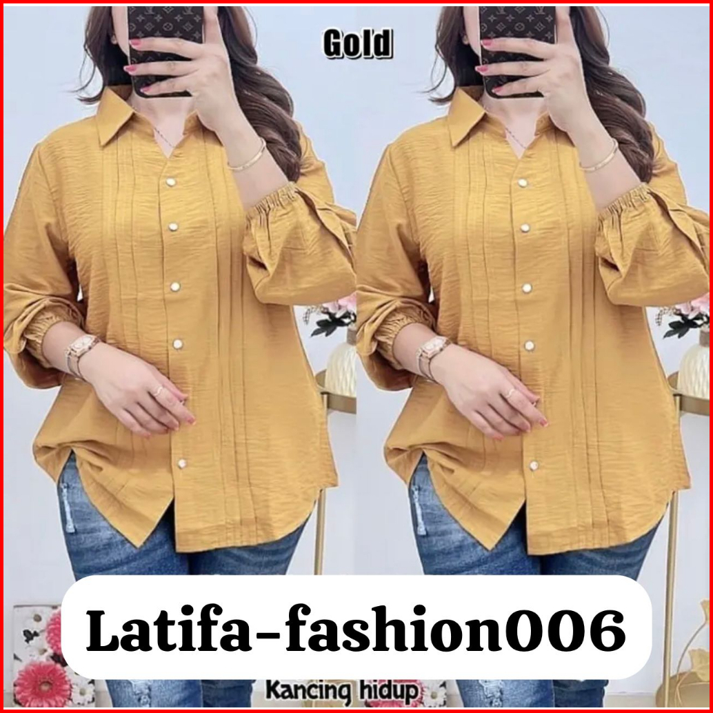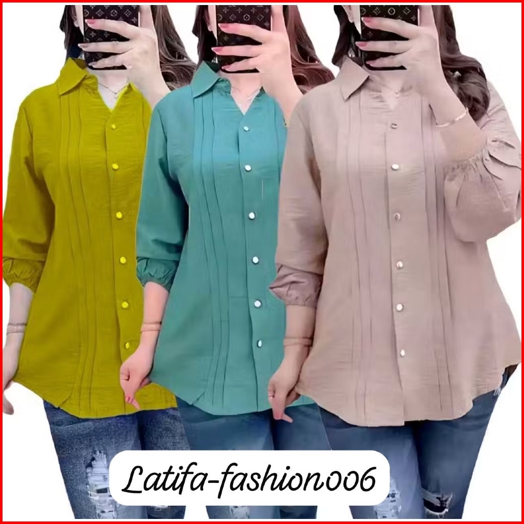 Kemeja Wanita Crinkle Atasan Wanita Polos Premium Lengan Panjang Terbaru Kekinian Star