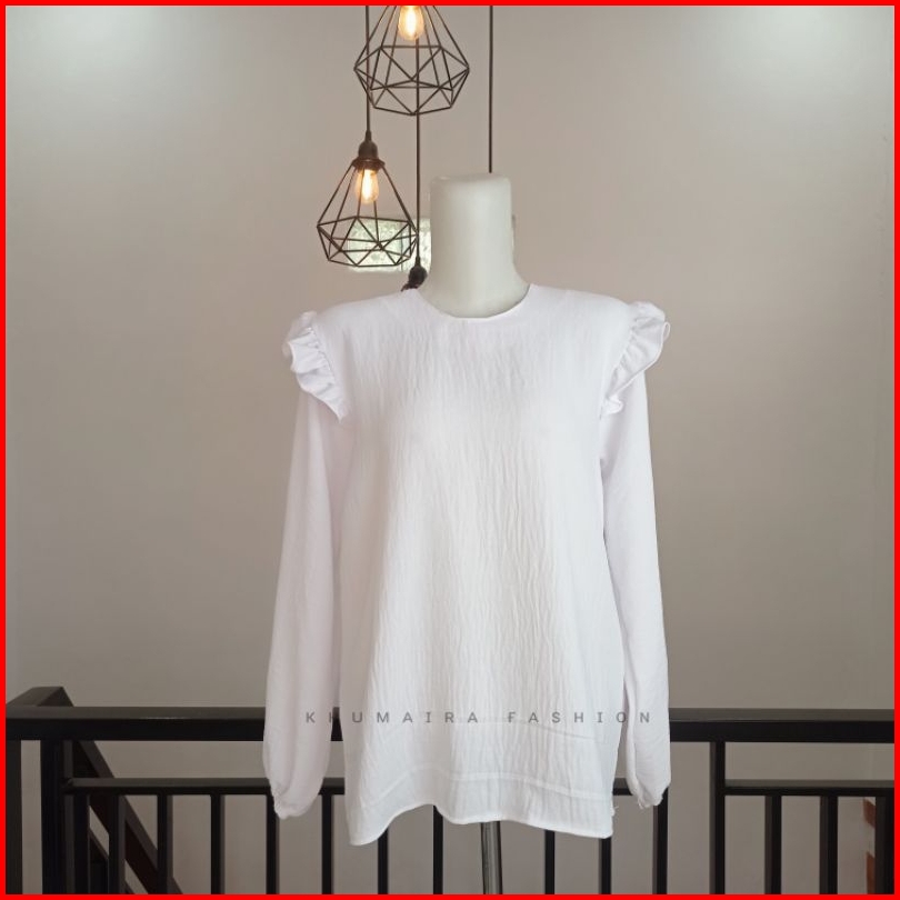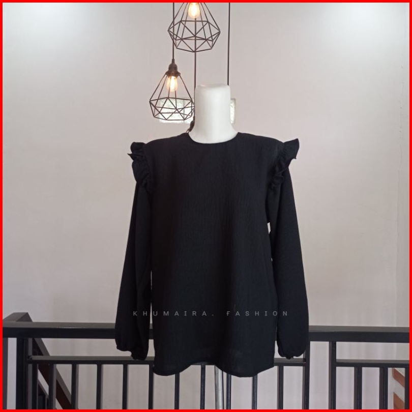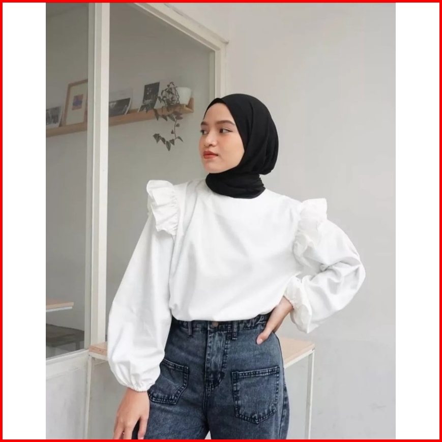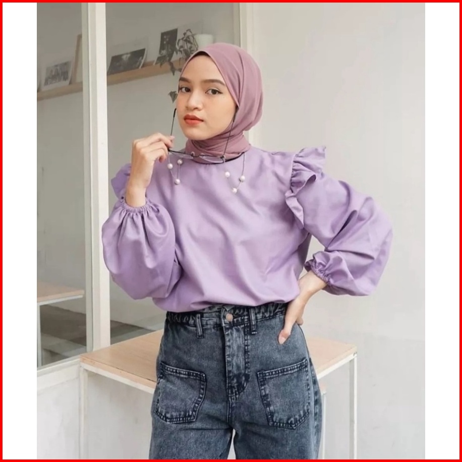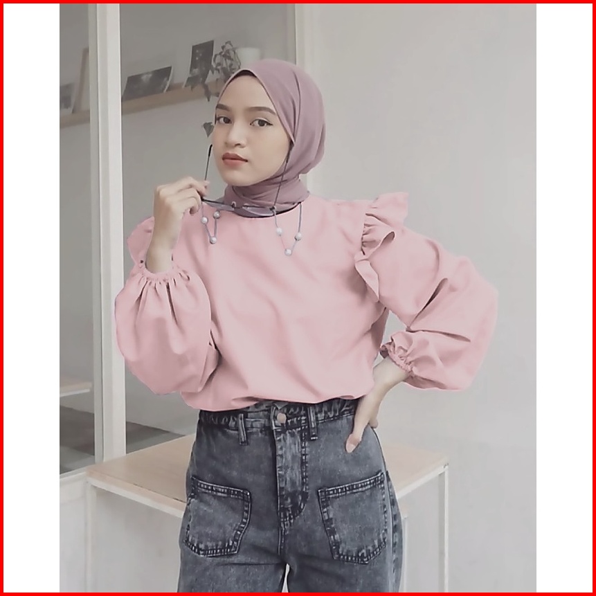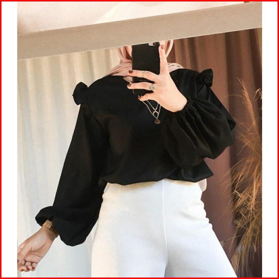 Hasby Blus Atasan Wanita M-l-xl Lengan Balon Iner Polos Bahan Crinkle