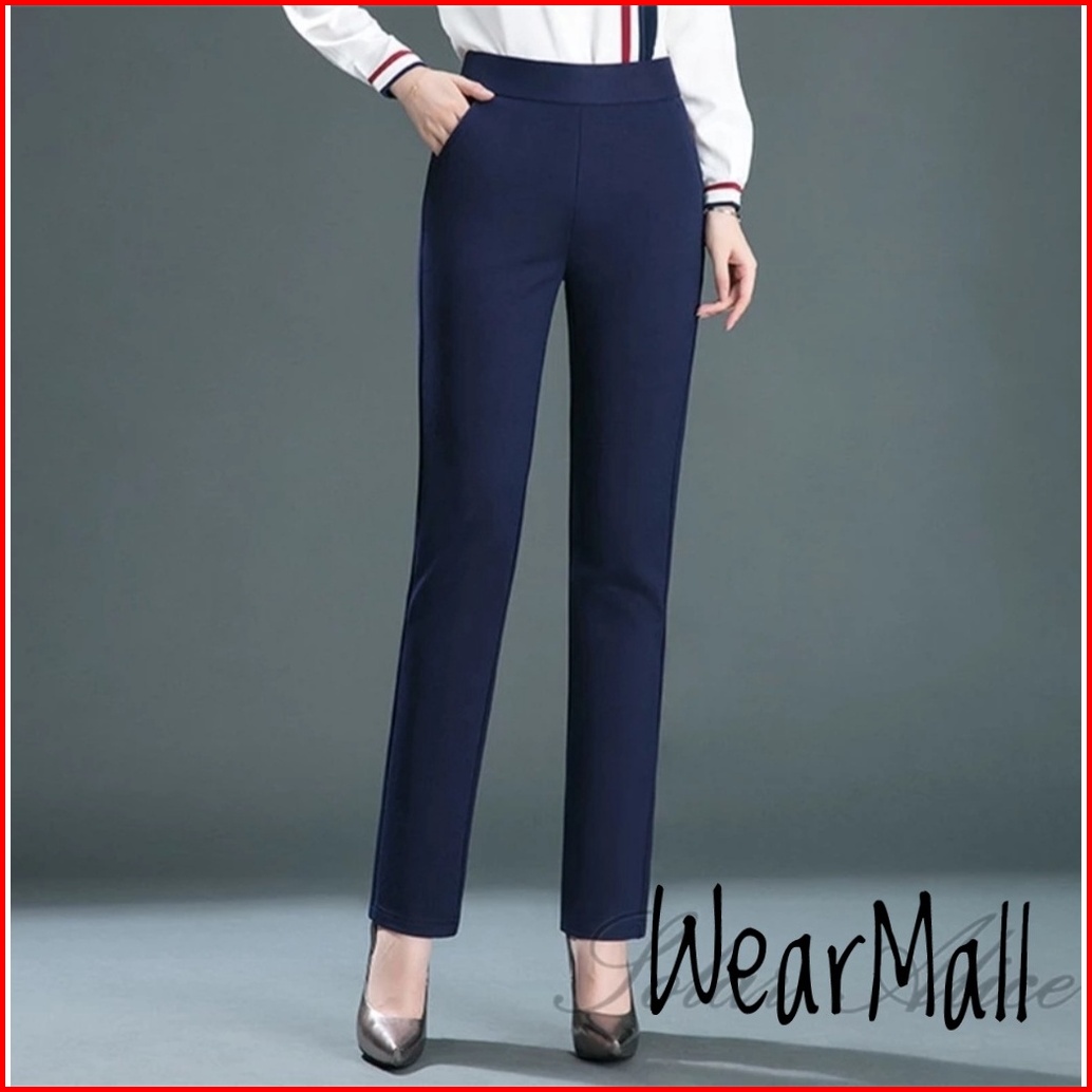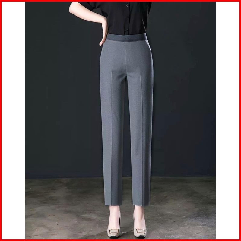 Celana Wanita Kerja Kantoran Formal Celana Bahan Terbaru Pinggang Full Karet Kekinian Model Slimfit D017