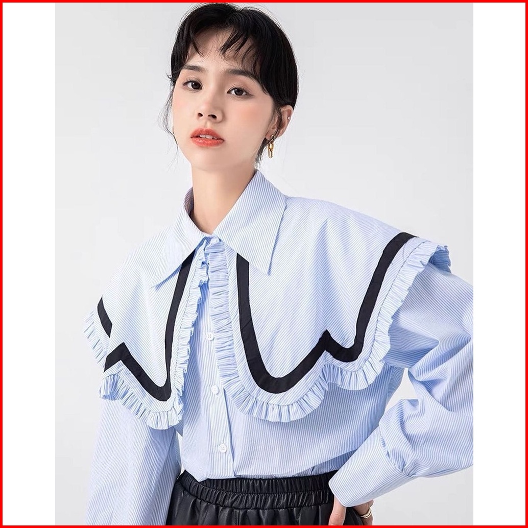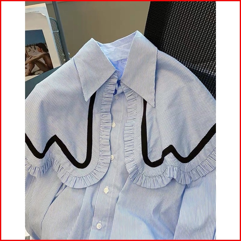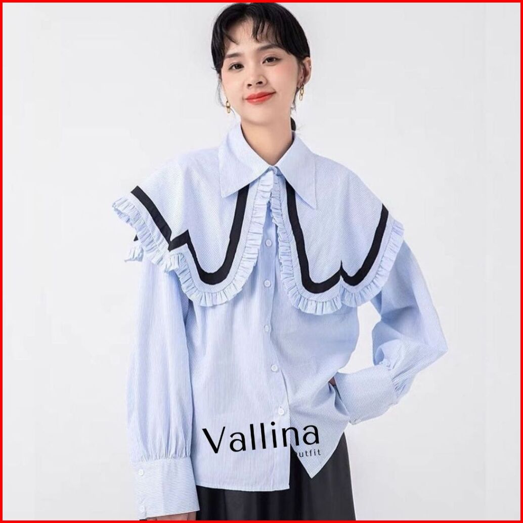Vallina Outfit - Cameron Top Blouse Bertha Collar Atasan Shirt Kemeja Stripe Salur Cotton Korean Remaja Wanita Premium