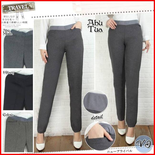 Celana Kerja Pinggang Karet Wanita S.m.l.xl