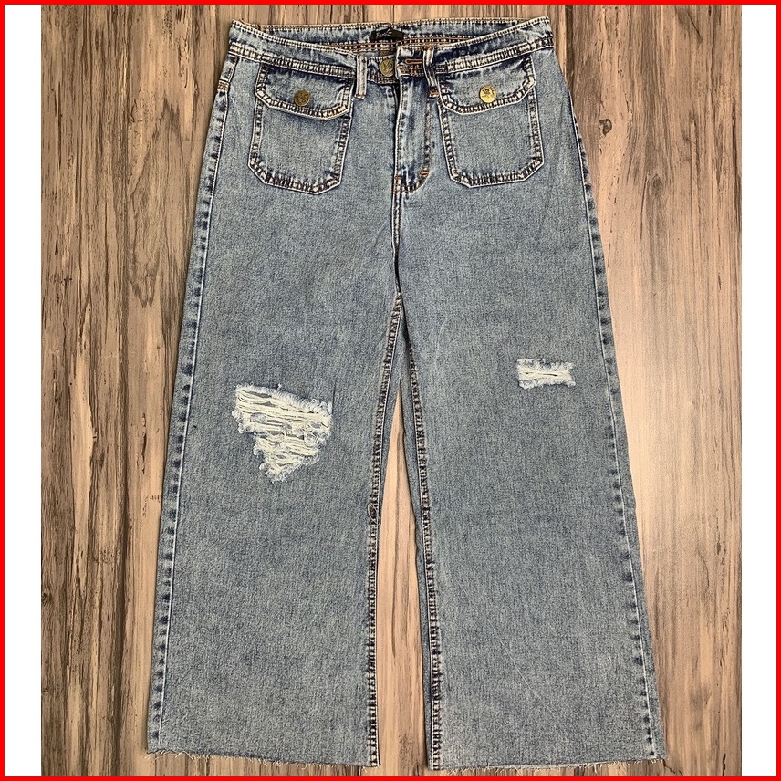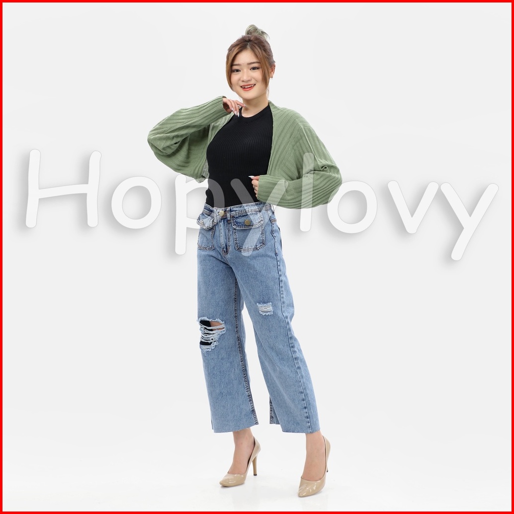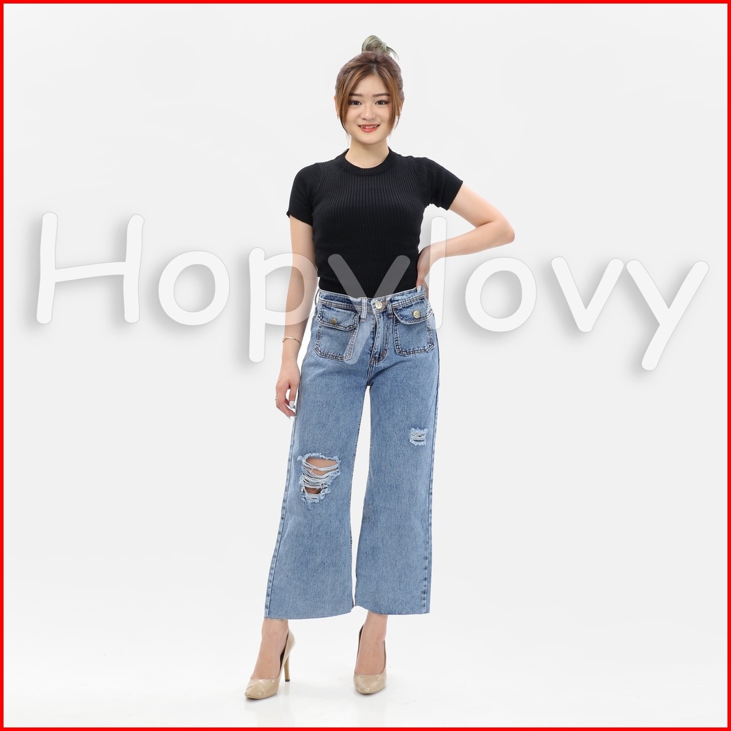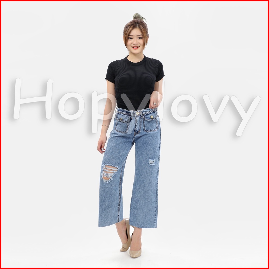 Hopylovy Celana Kulot Highwaist Jeans Wanita Bf Ripped Unfinished Jehana