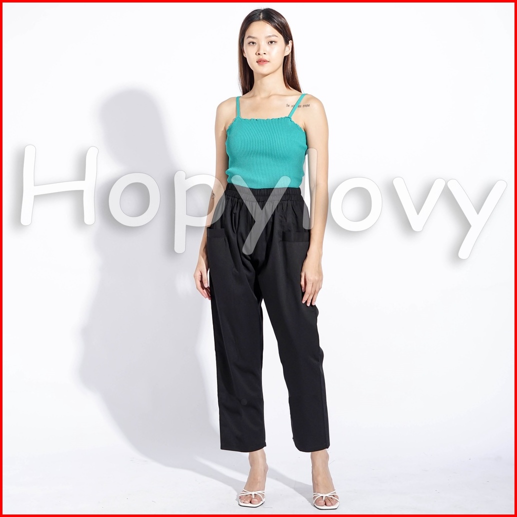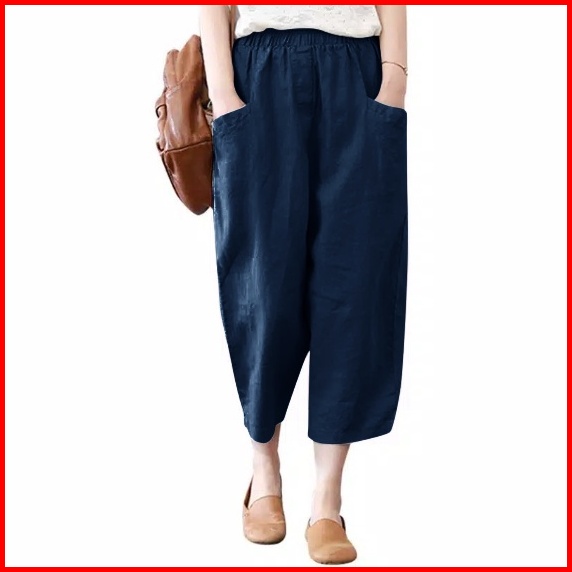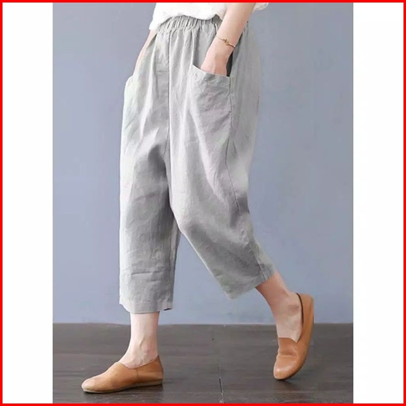 Hopylovy Celana Kulot Wanita Celana Highwaist Pinggang Karet Loose Kulot Katun High Waist Catalia