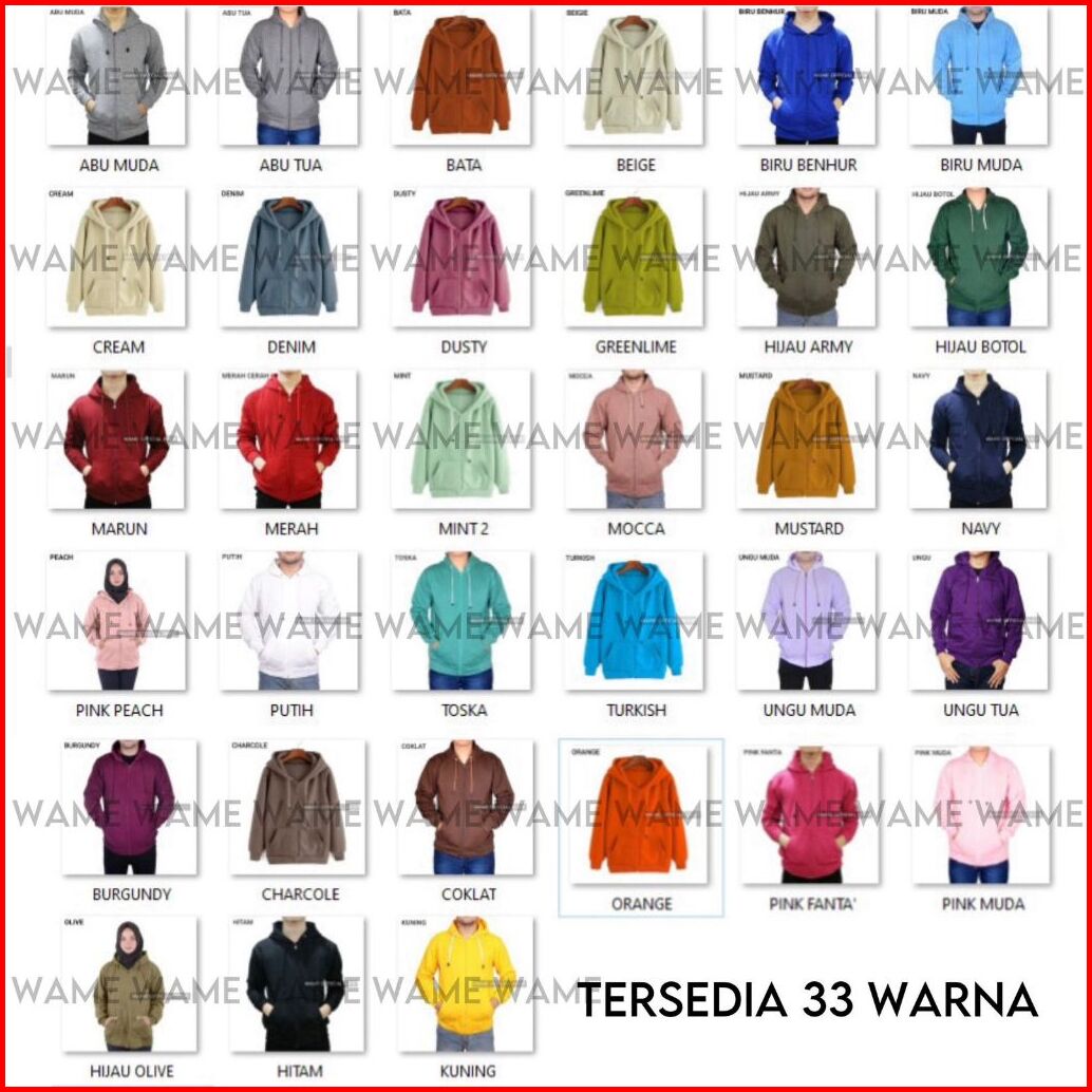 Beige, Dusty Pink, Mint, Burgundy, Mocca, Charcole, Biru Muda, Cream, Ungu muda, Hitam, Abu muda, Navy, Marun, Denim, Pink Muda, Toska, Abu Tua, Hijau botol, Army, Biru benhur, Putih, Merah, Coklat, Kuning, Ungu Tua, Pink fanta, Greenlime, Olive, Bata, Mustard, Orange, Turkish, Pink Peach