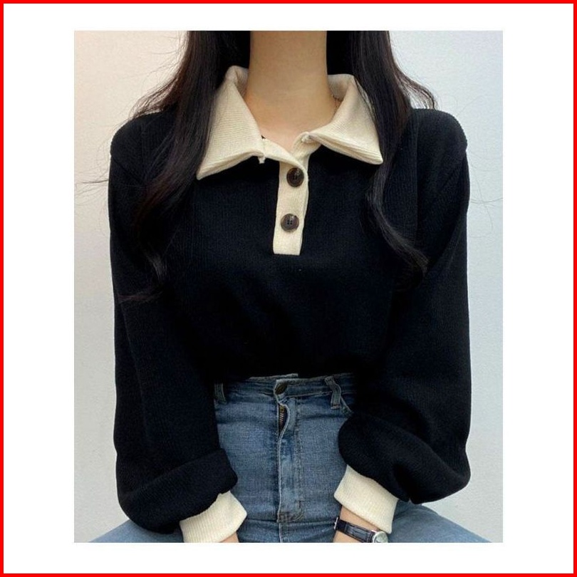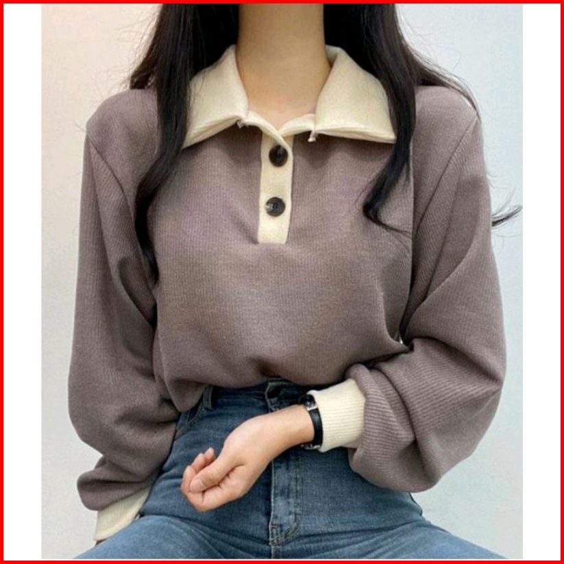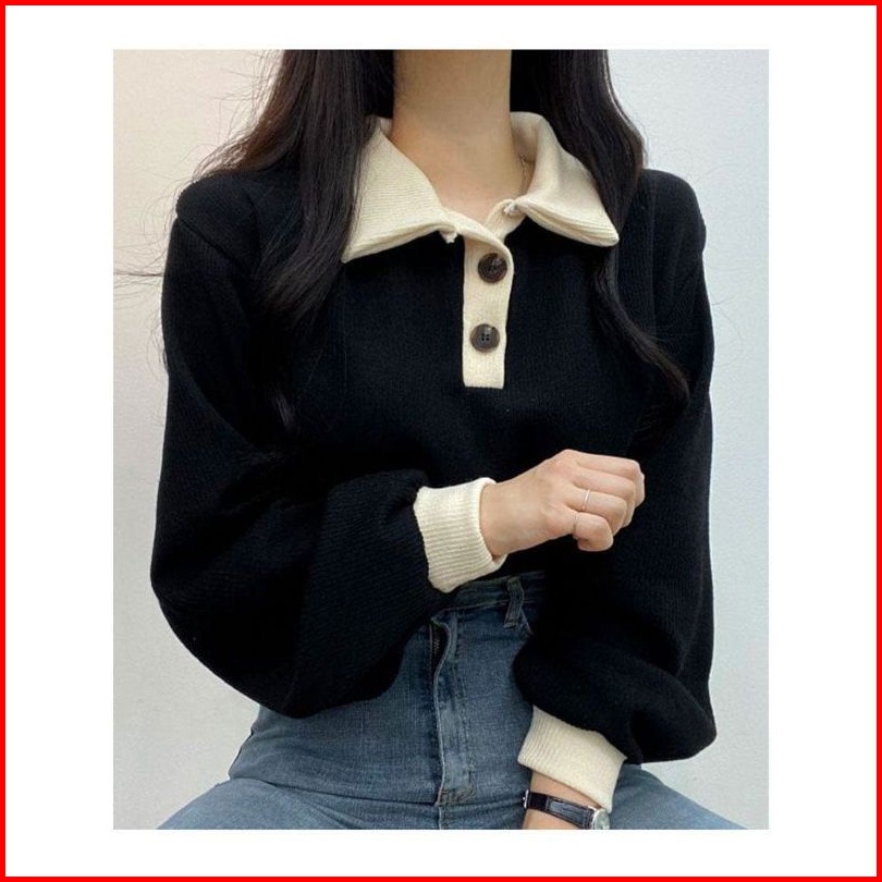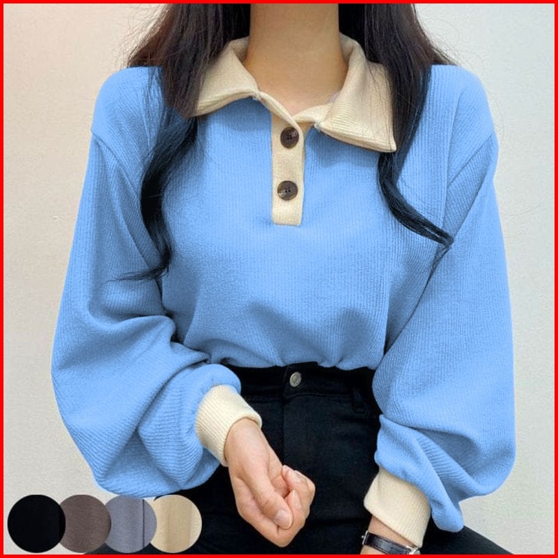 Sweater Wanita Oversize Collar Girl Sweater Kancing Polos Kerah Sweater Size M.l.xl Korean Style