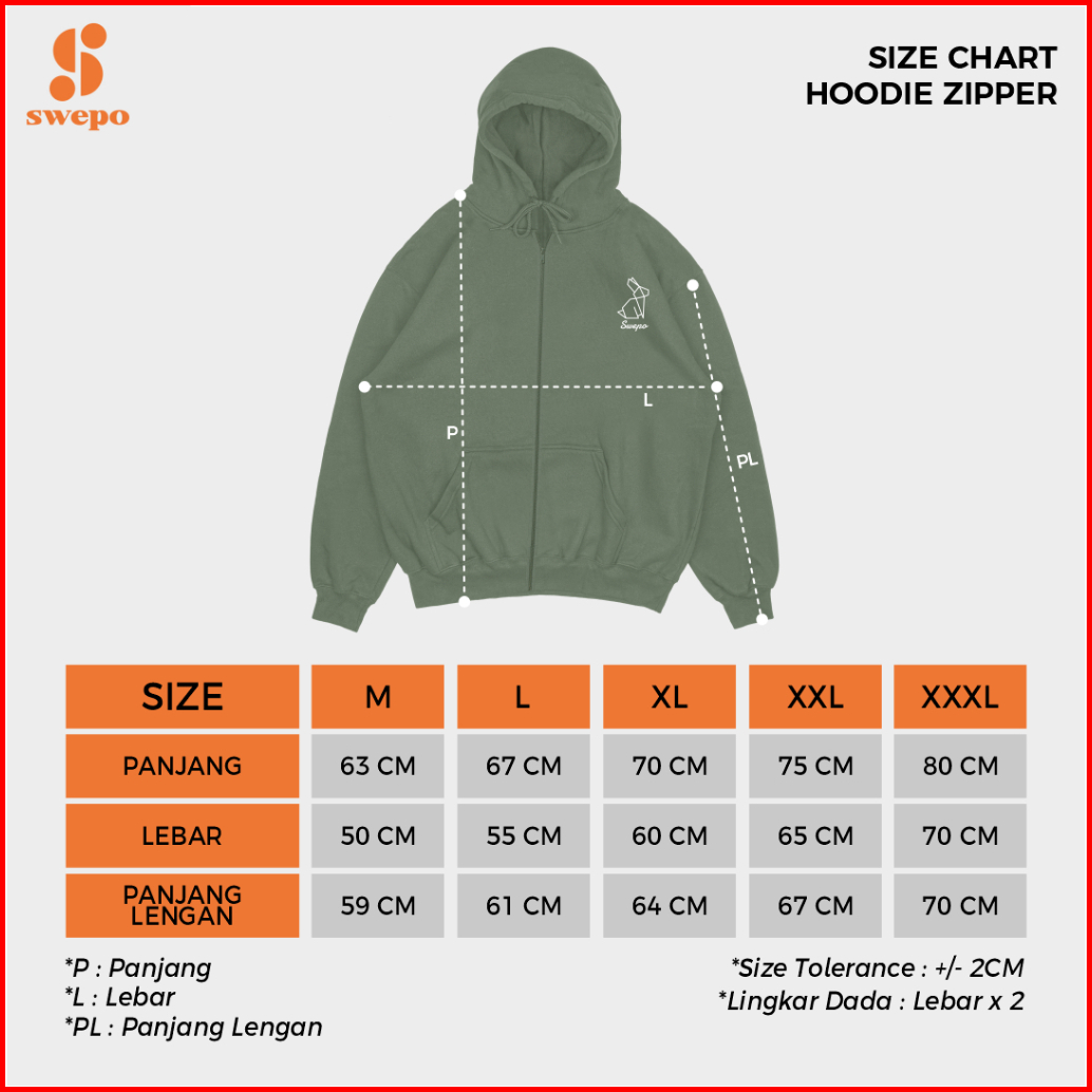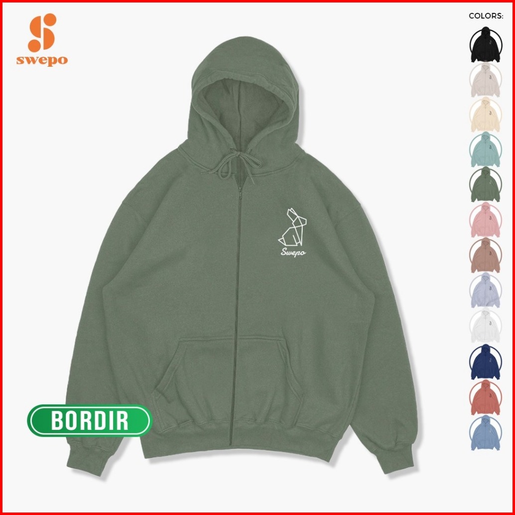 Swepo Hoodie Zipper Poly Bunny Bordir Size M-xxl Pria Wanita