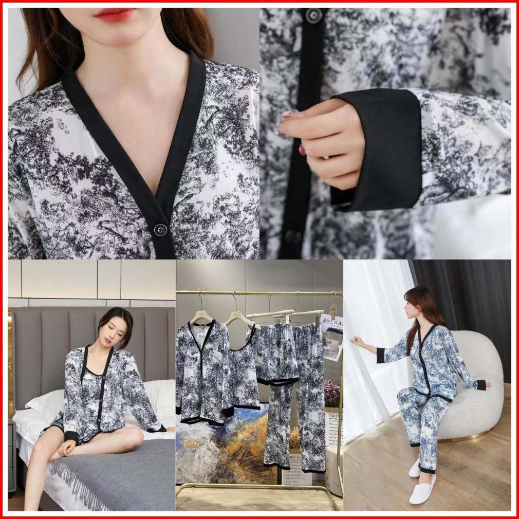 Uninice Piyama Wanita Gaya Cina Homewear Musim Panas Es Sutra Tipis Longgar Ukuran Besar