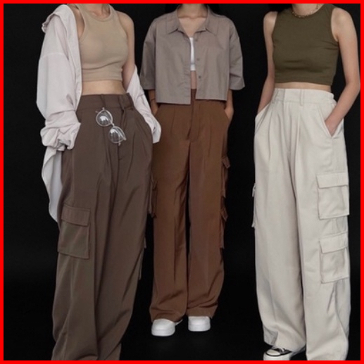 Celana Cargo Pants Celana High Waist Loose Cargo Pants Delcy Celana Kargo Wanita Highwaist Hopylovy