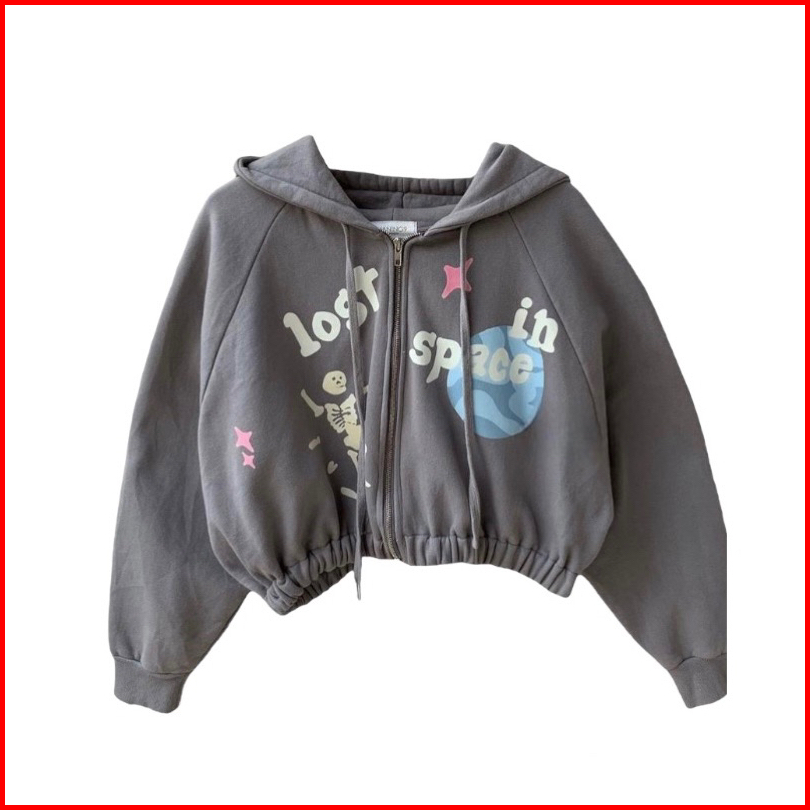 Spaice In Jaket Jaket Crop Wanita Kekinian Zipper Hoodie