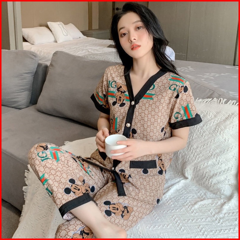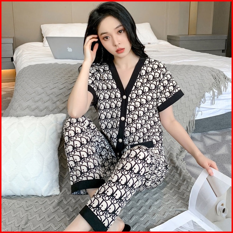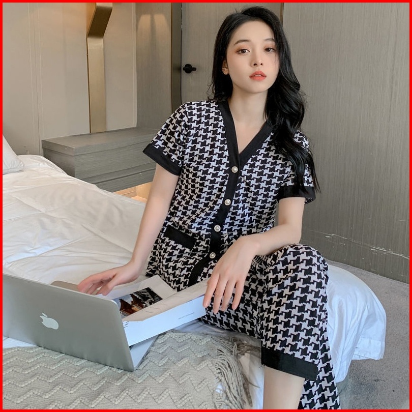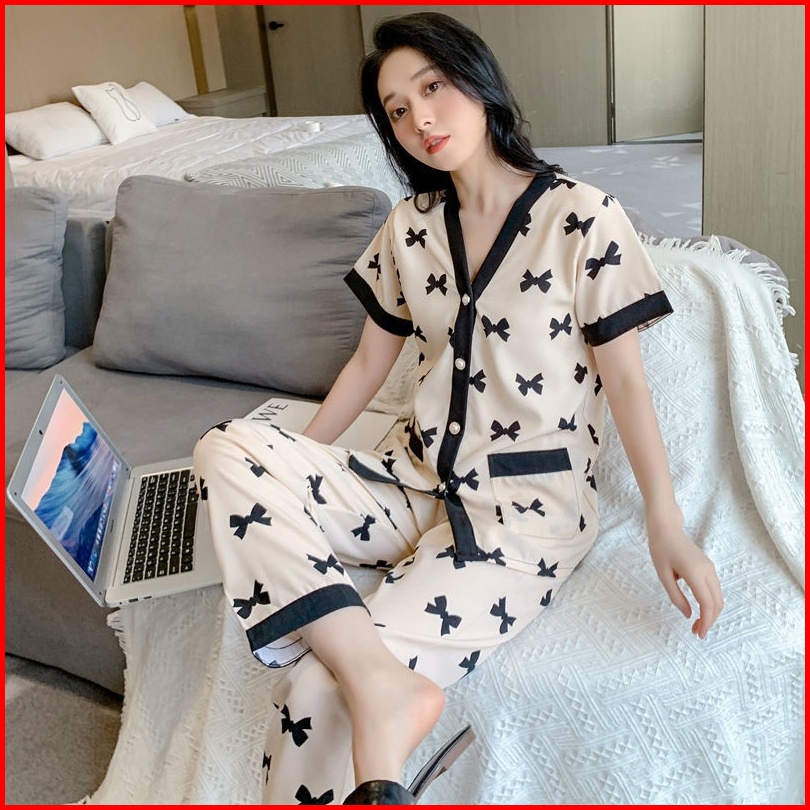 Stelan Piyama Cp Lengan Pendek Kancing Celana Panjang List Hitam Sbcp