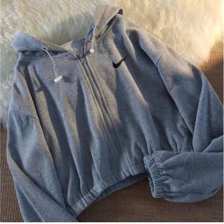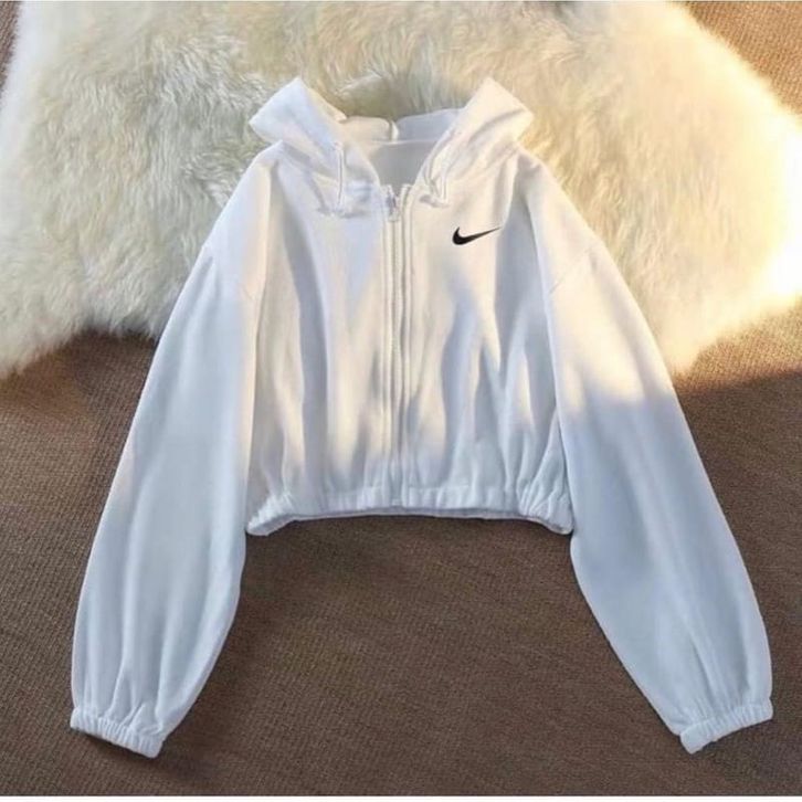 Sweater Crop Top Wanita Hoodie Zipper Bordir Fleece Premium Lengan Panjang