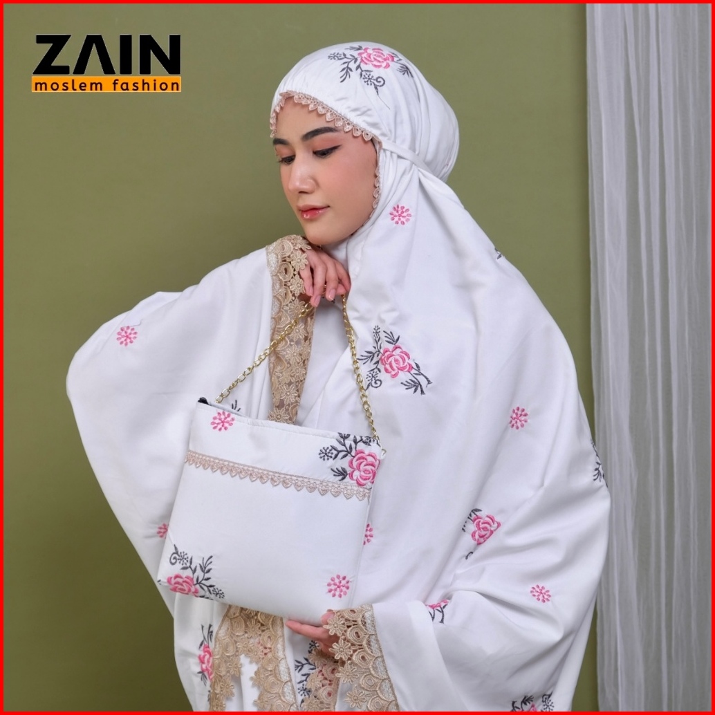 Zain Moslem Fashion Mukena Dewasa Katun Premium Bordir Bunga Corla Mewah Exlusive