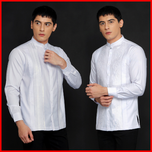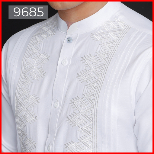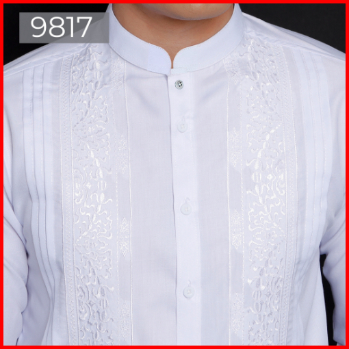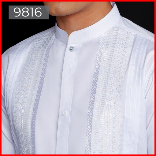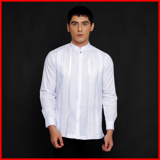 Casella Baju Koko Pria Lengan Panjang Pleats Embroidery Baju Koko Putih Lengan Panjang