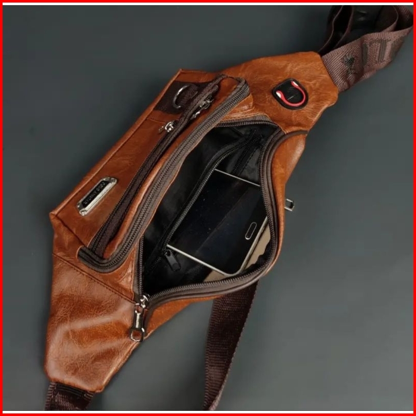 Tas Pria Selempang Multi Fungsi Waisbag Original Kulit Pu Polo Amstar Pria Model Terbaru