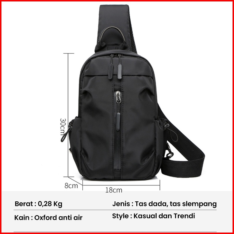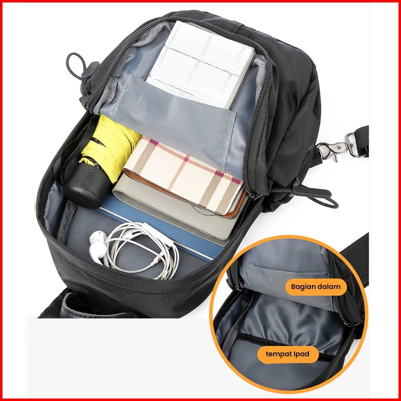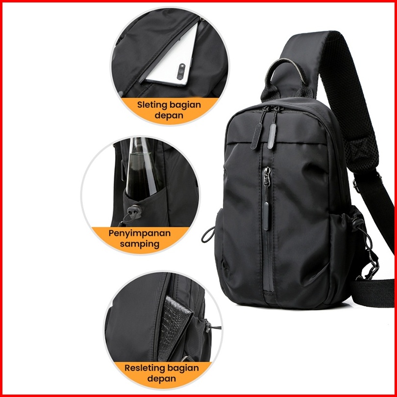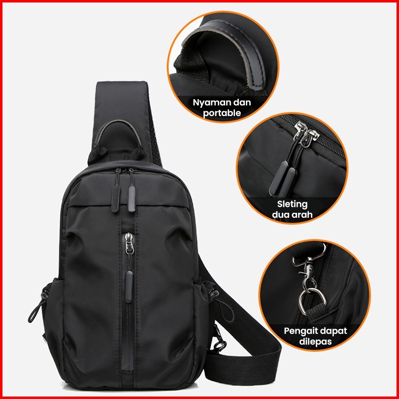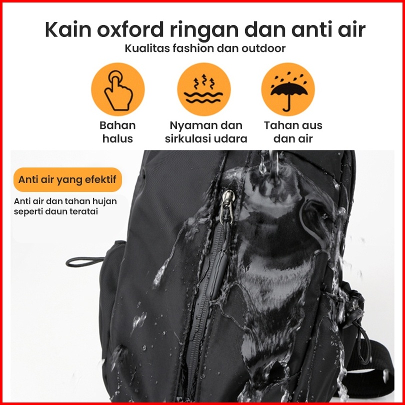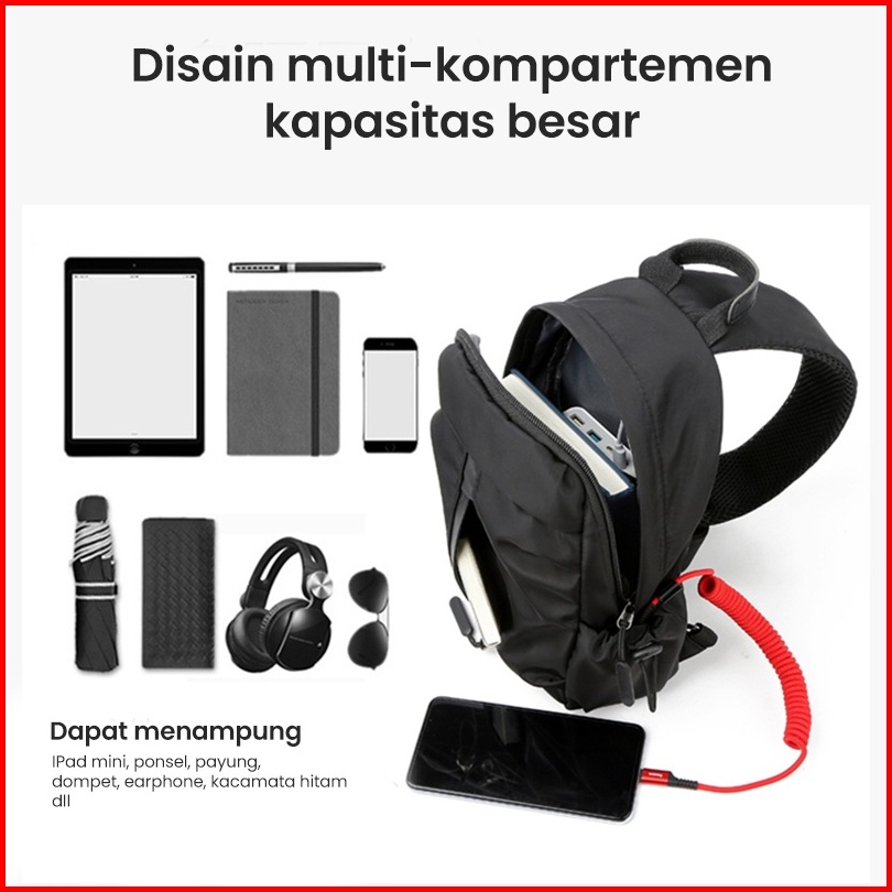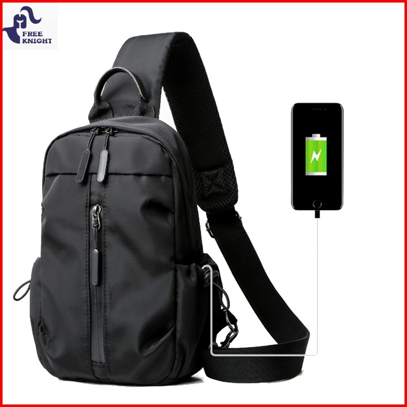 Freeknight Tas Selempang Pria Usb Sling Bag Waterproof Tas Slempang Polos Fashion Casual Black Ts714