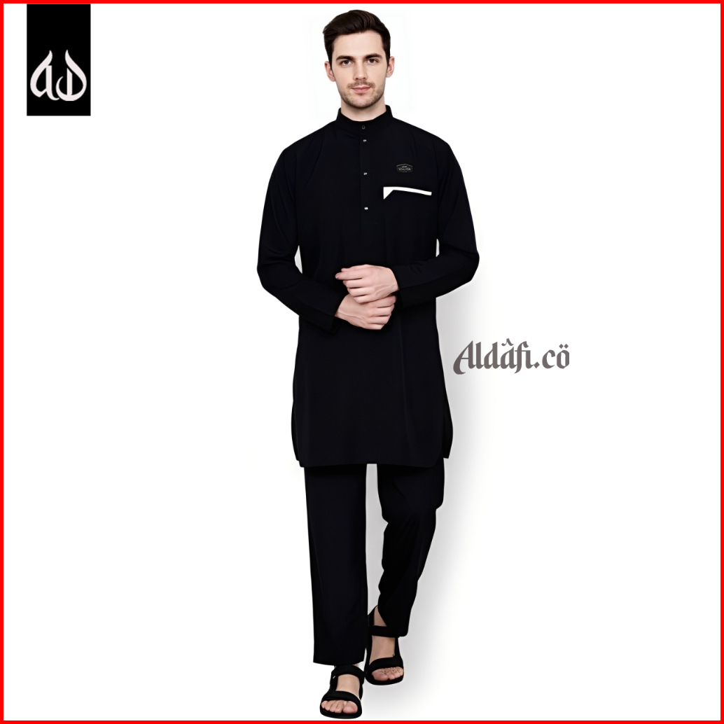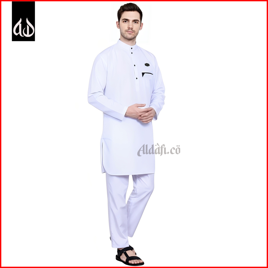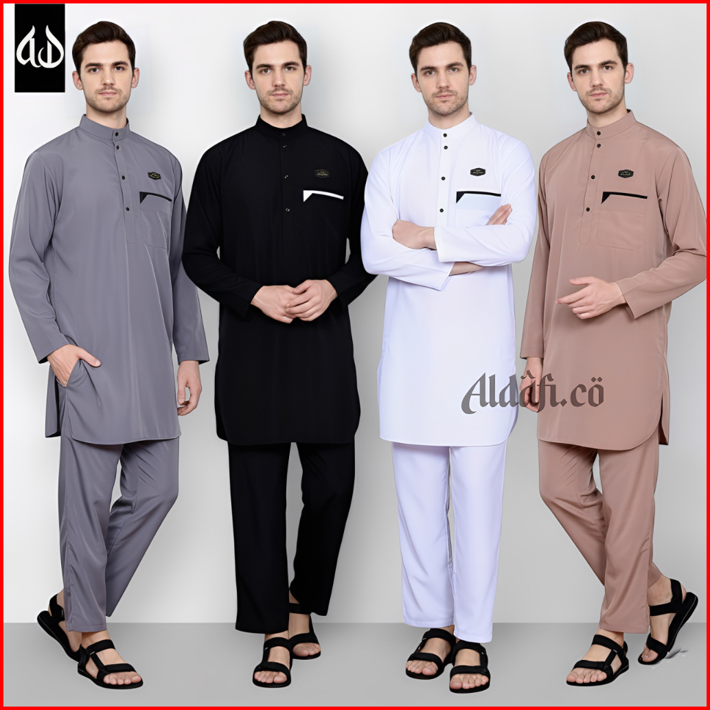 Koko Setelan Polos Lengan Panjang - Baju Kurta Pakistan Set Celana - Koko Pria Dewasa - Free Peci Dan Tasbih