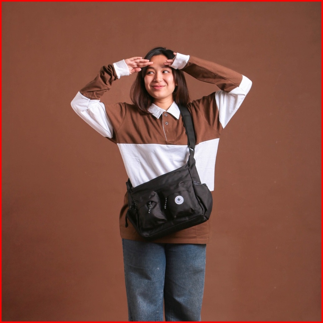 Fertig - Hilly Black Sling Bag - Tas Selempang Hitam Multi Pocket Pria Muat Banyak Kompartemen Luas