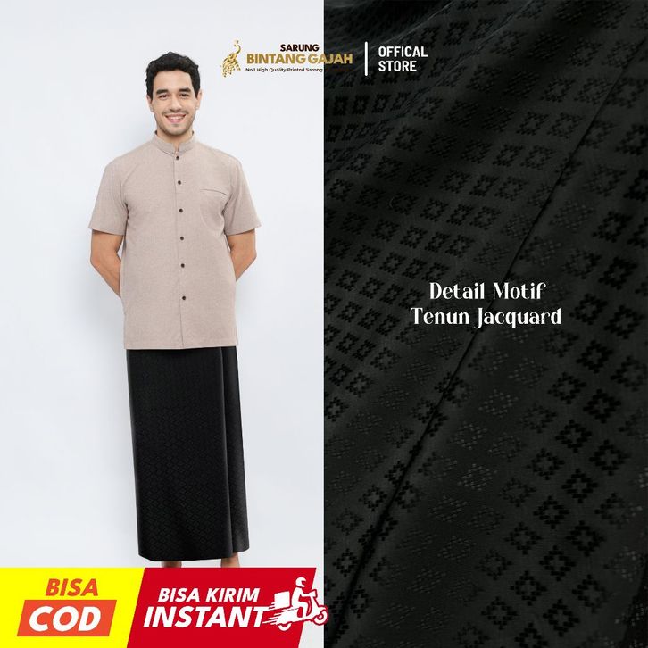 Sarung Bintang Gajah MH 02 Warna Hitam Polos Tenun Jacquard