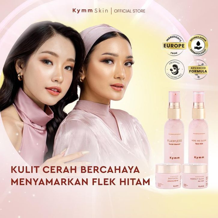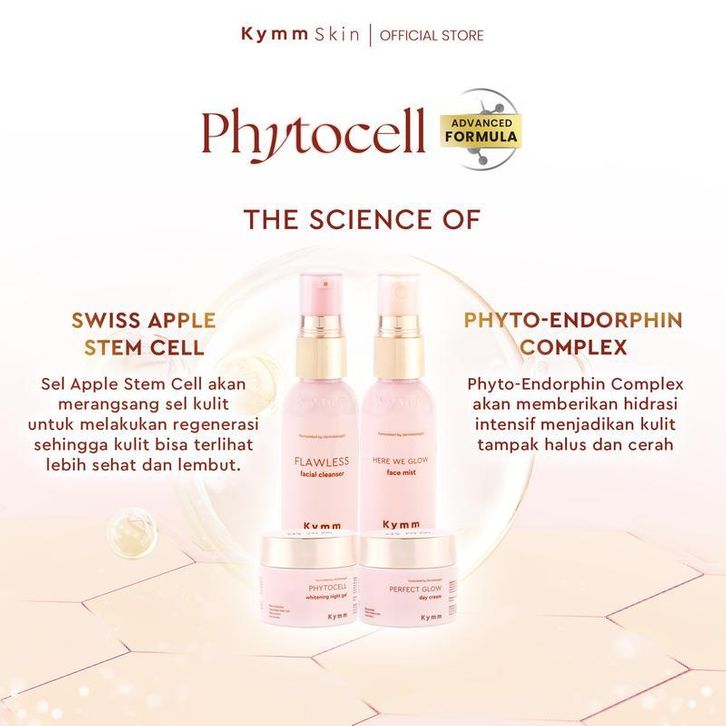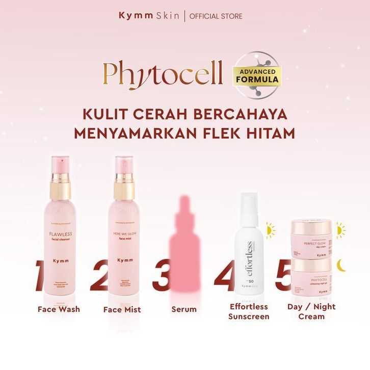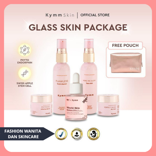 KYMM SKIN 5pcs + Pouch Glass Skin Package with Phytocell DNA Salmon Phyto Face Wash, Face Mist, Day Cream, Night Cream +
