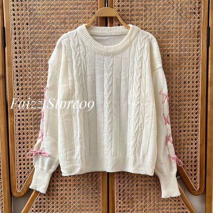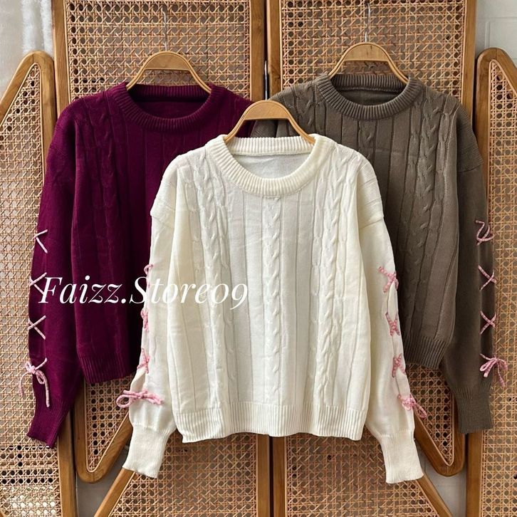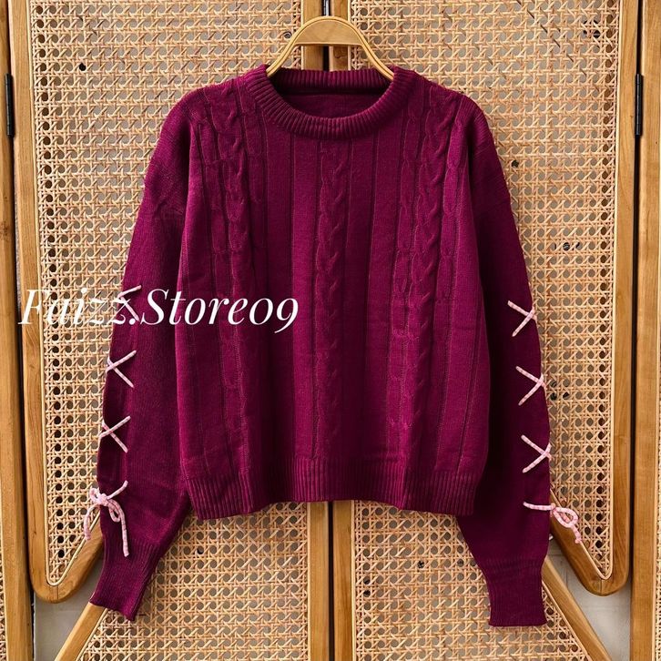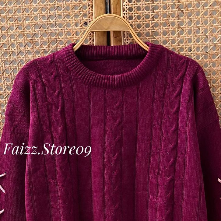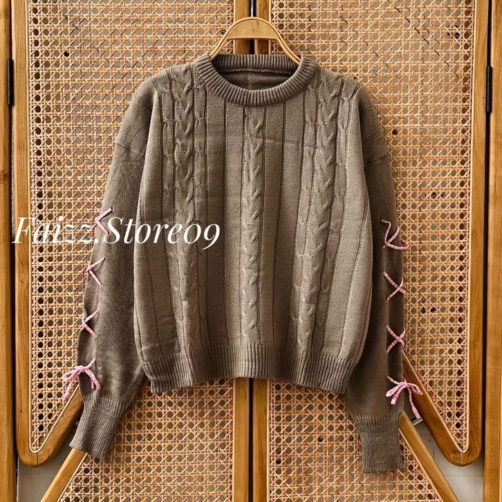 Sweater Rajut Cable Strap Korea Wanita – Bahan Rajut Premium Tebal, Halus, Tidak Gatal, Model Kekinian & Nyaman Dipakai