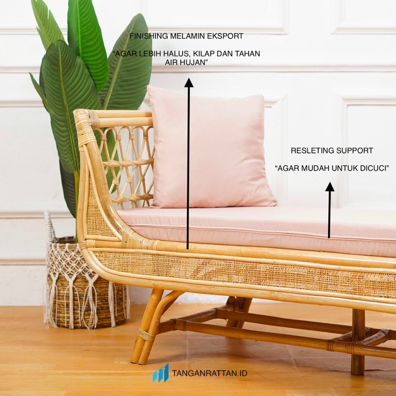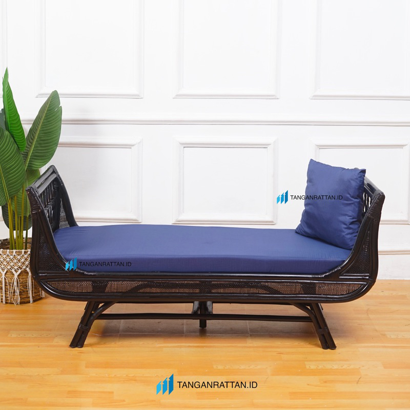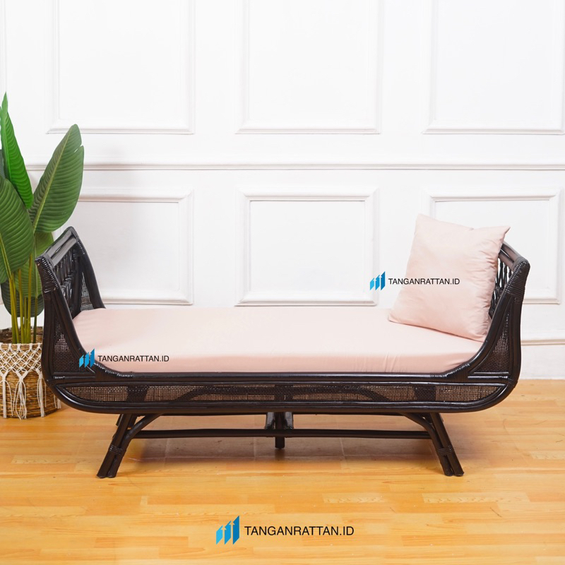 SOFA BANCH ROTAN HITAM PANJANG 3 SETAER DENGAN BANTAL PREMIUM / KURSI SOFA SANTAI BENCH ROTAN FINISHING MELAMIN EKSPOR