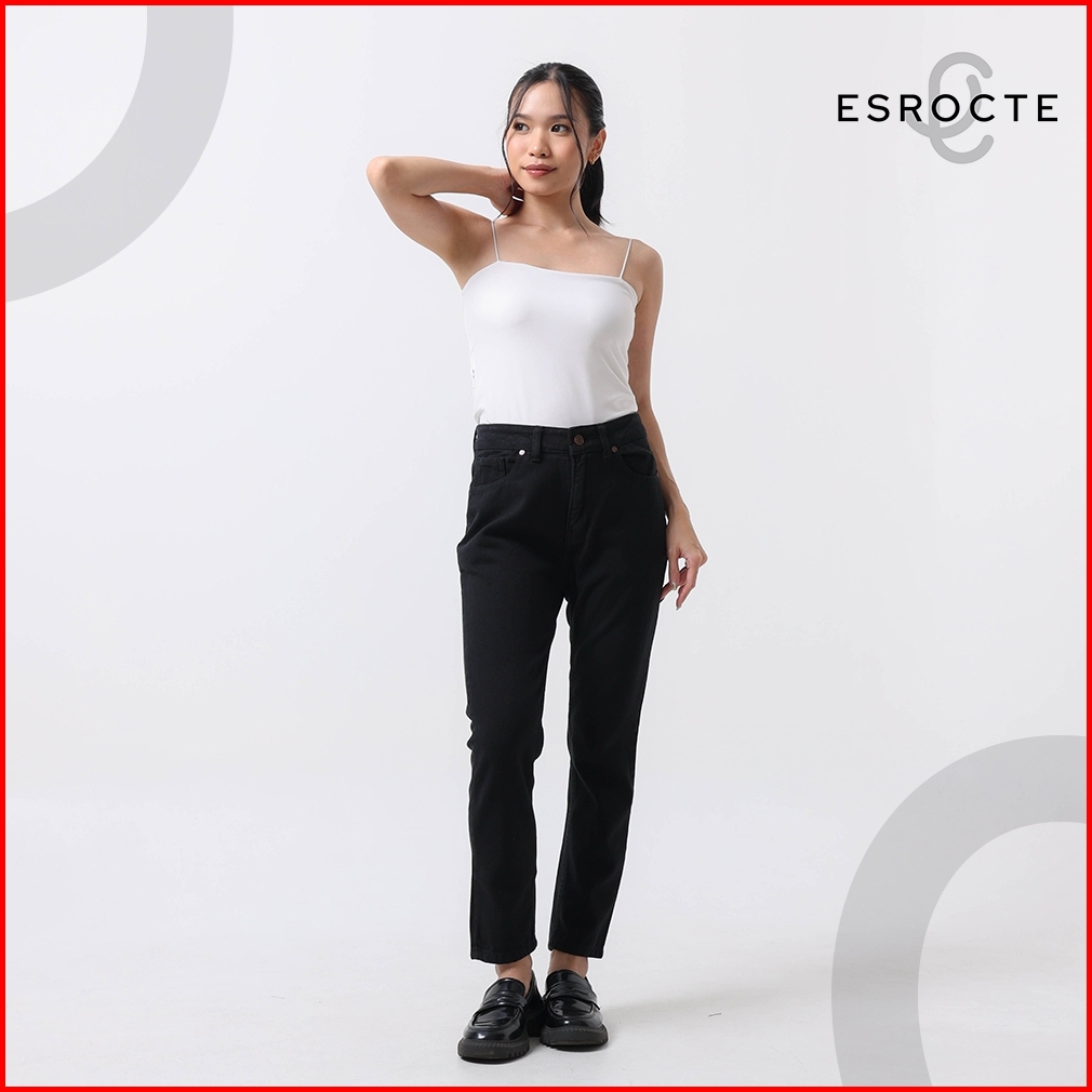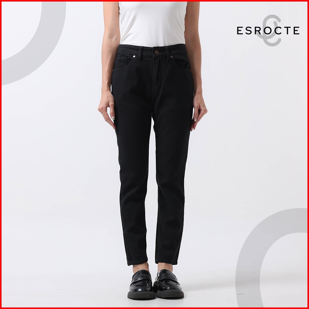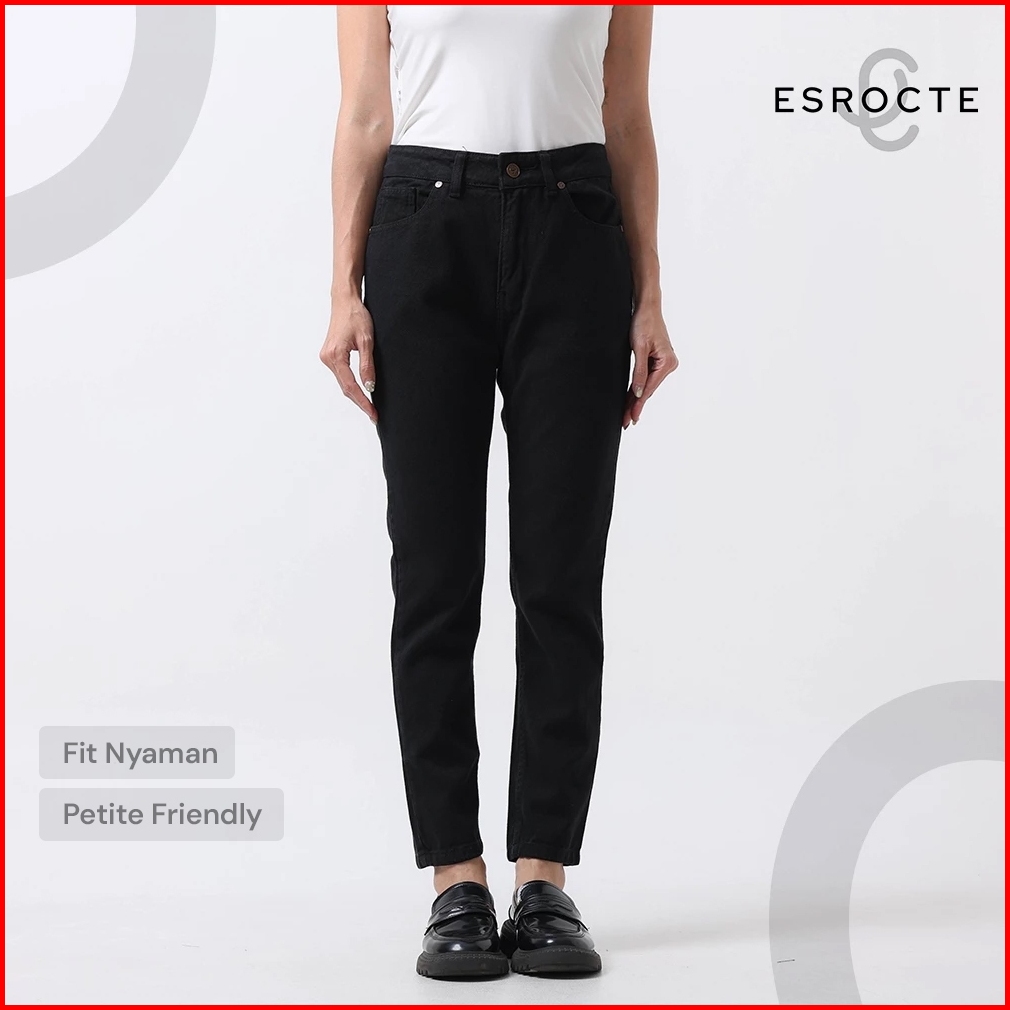 Esrocte Zaya Pants Celana Boyfriend Jeans High-waist Wanita Hitam 2638