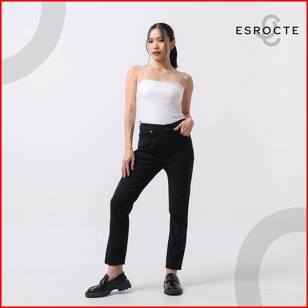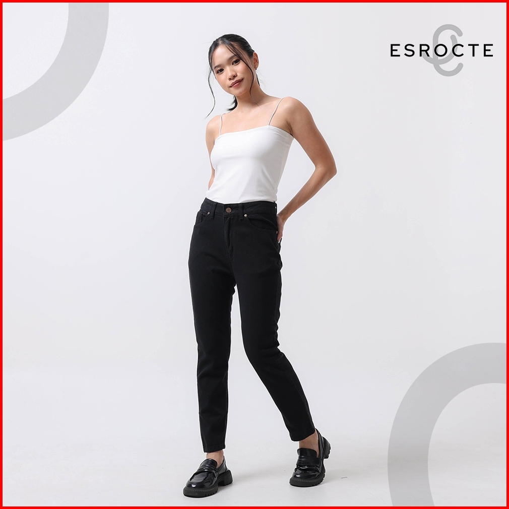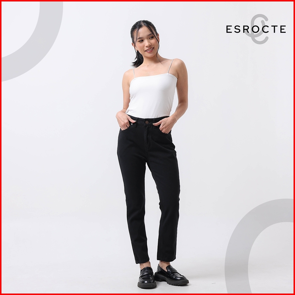 Esrocte Zaya Pants Celana Boyfriend Jeans High-waist Wanita Hitam 2638