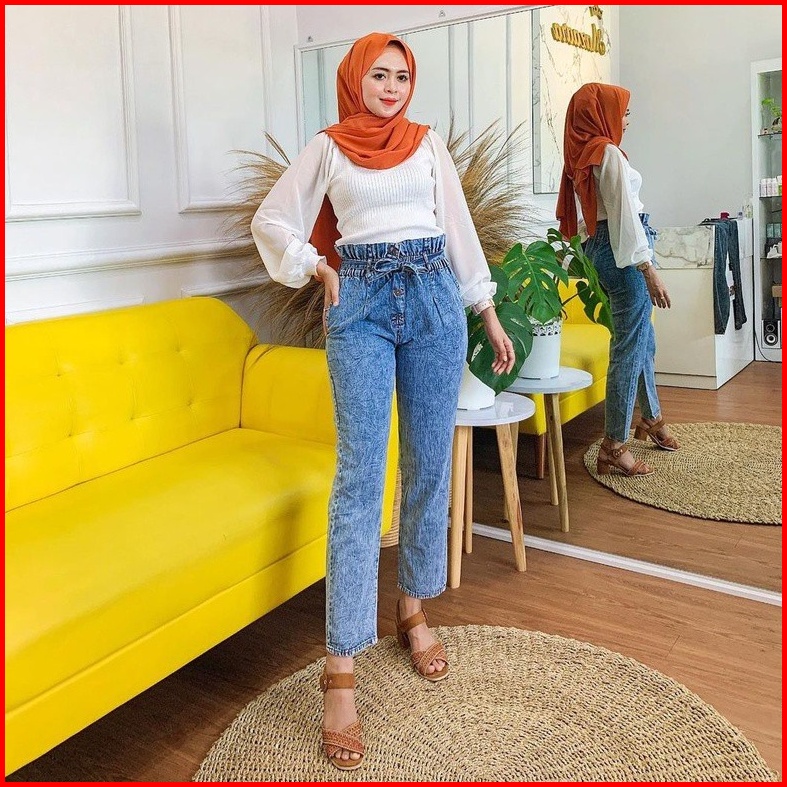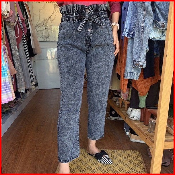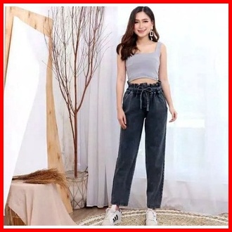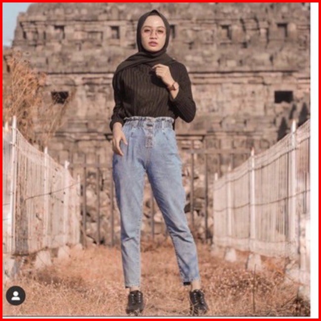 Difa Jeans Baggy Jeans Kancing 3 Boyfriends Wanita Baggy Kancing Tali