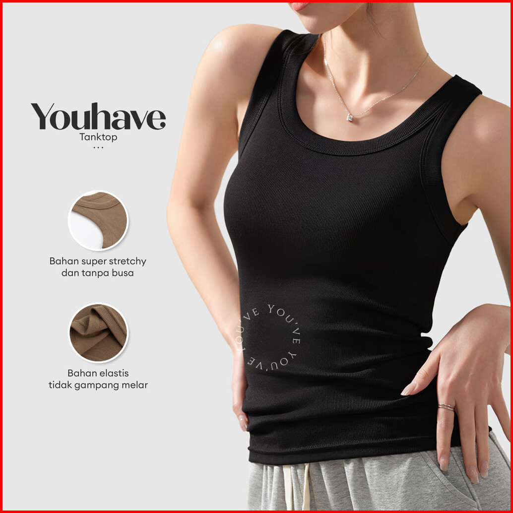 You Ve You Have Tank Top Tanktop Basic Singlet Tali Lebar Strap Square Neck Stretch Polos Wanita Tangtop Katun Perempuan