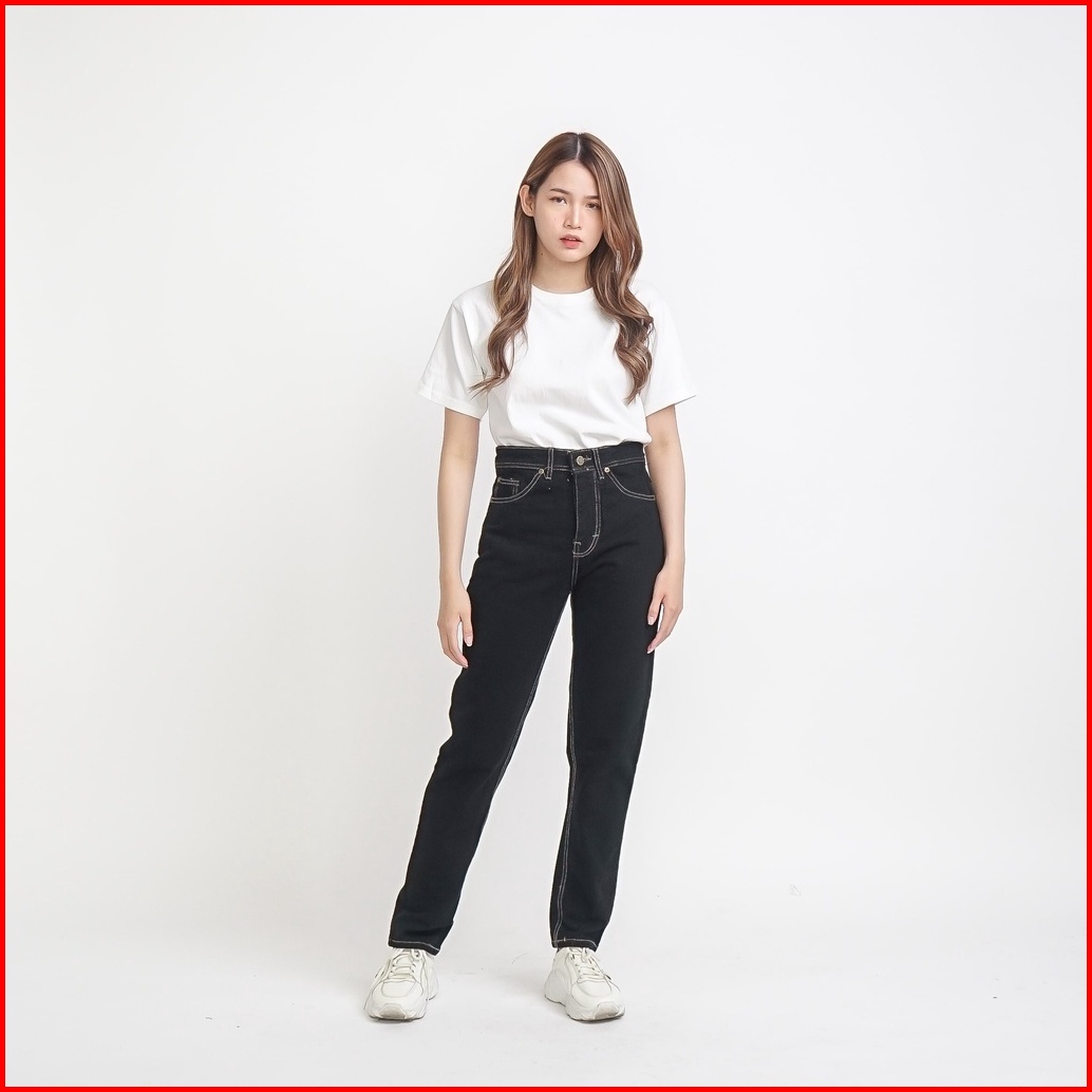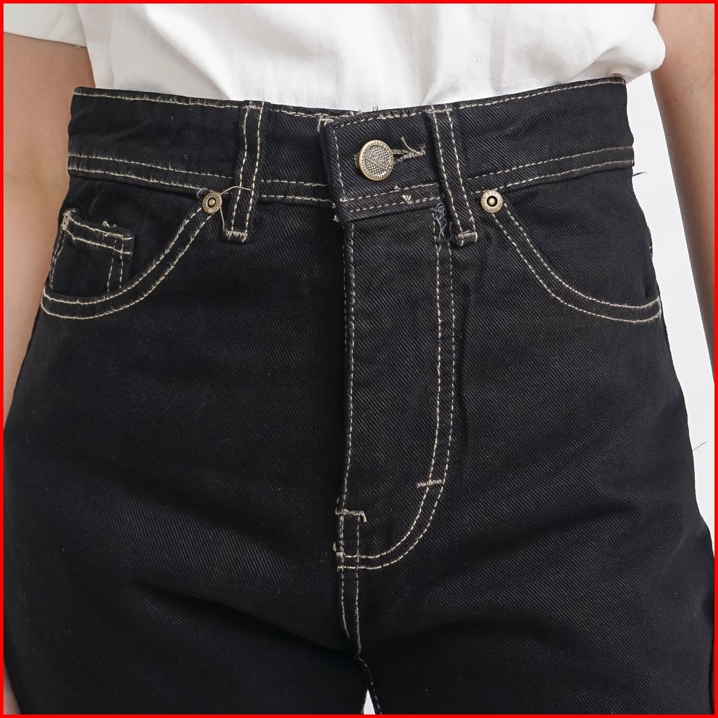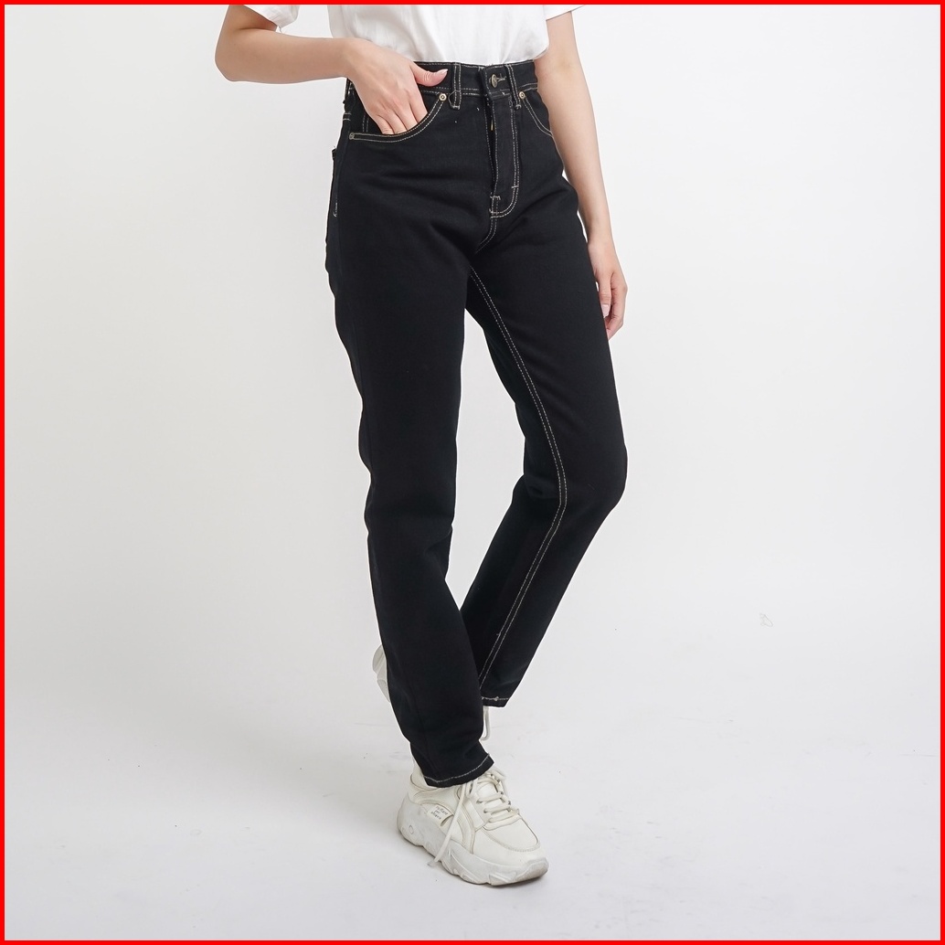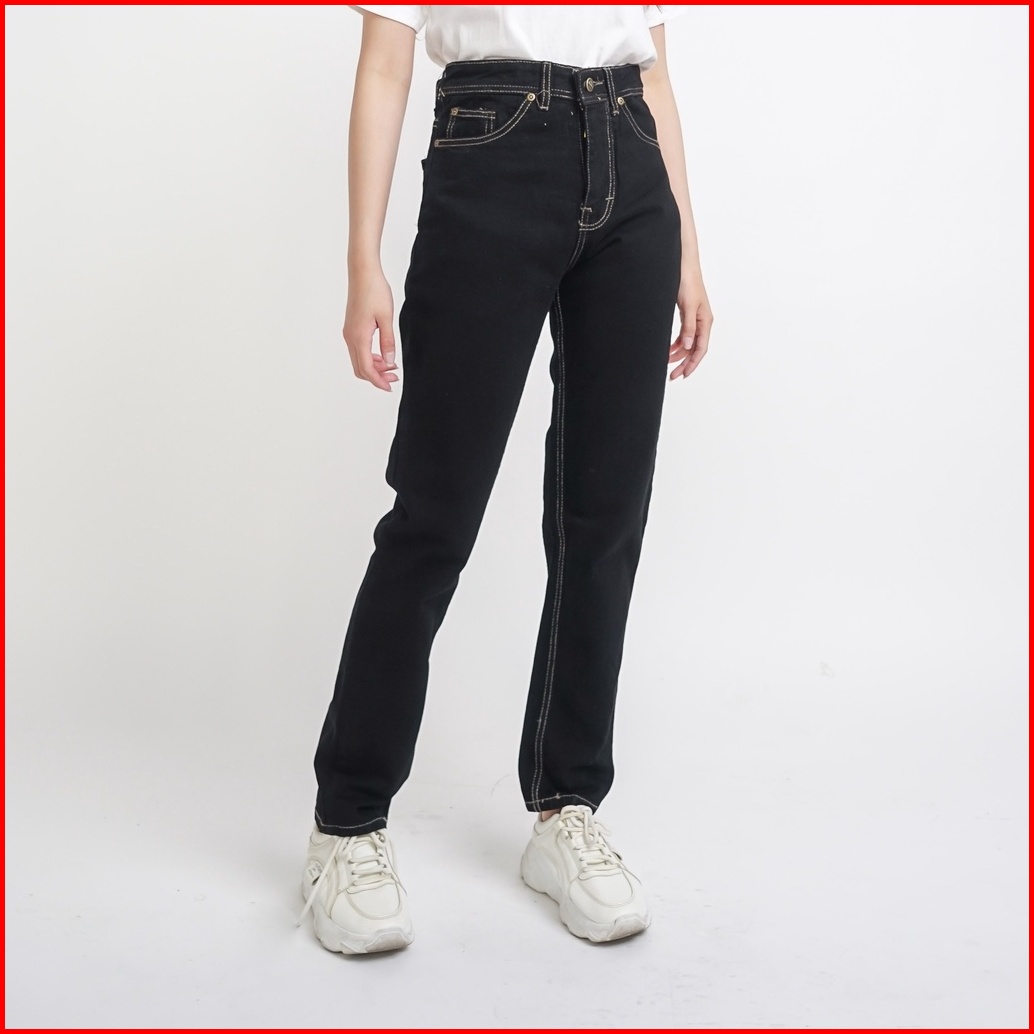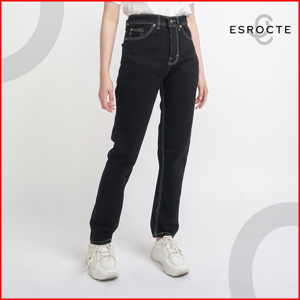 Esrocte Celana Boyfriend Low Waist Jeans Wanita P21 - Hitam Clash 26-38