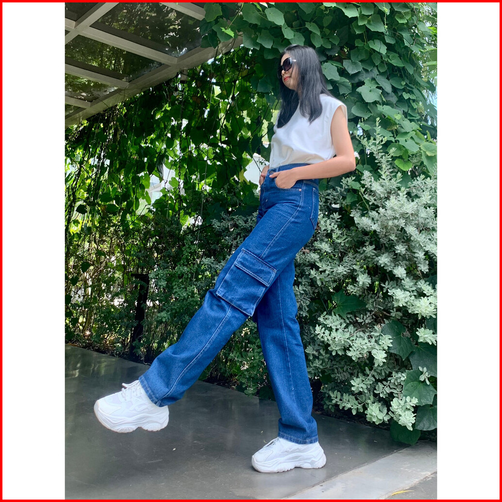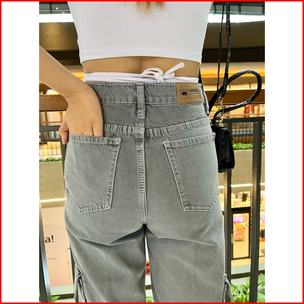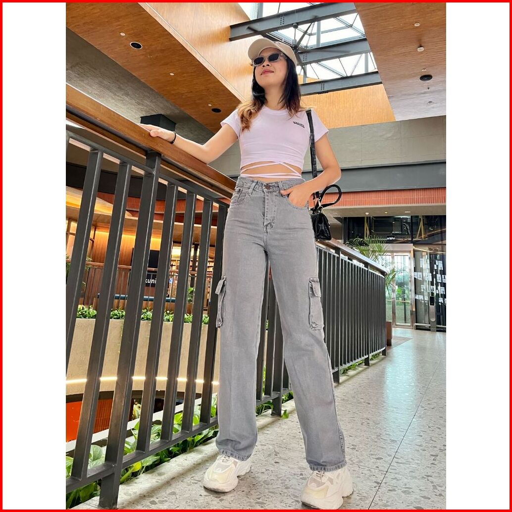 Fwr - Celana Highwaist Loose Cargo Jeans Maudyy