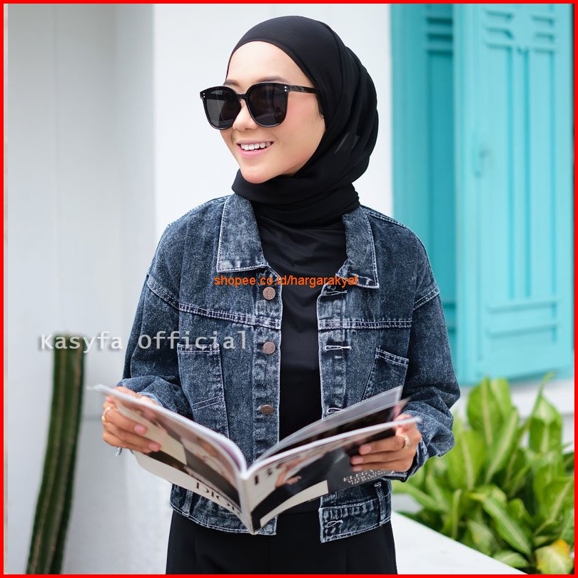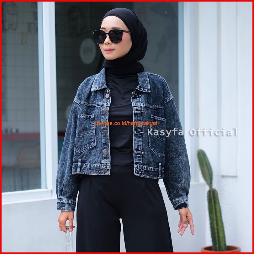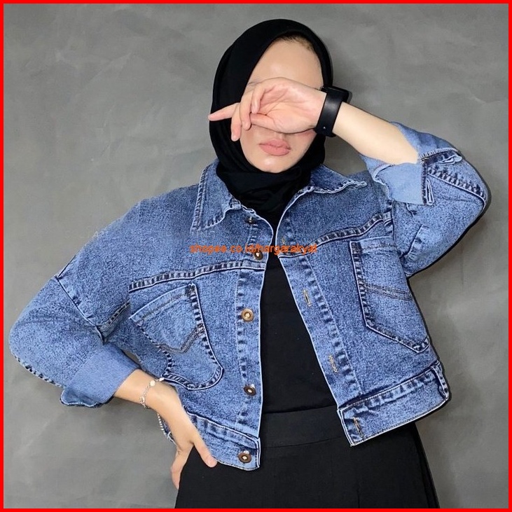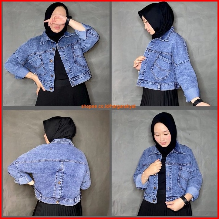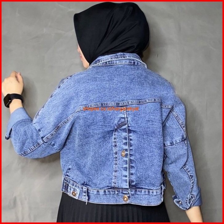 Nayra Jaket Jeans Crop Oversize Kancing Belakang
