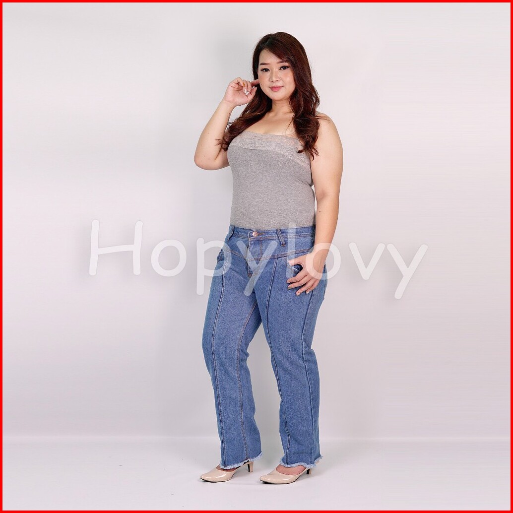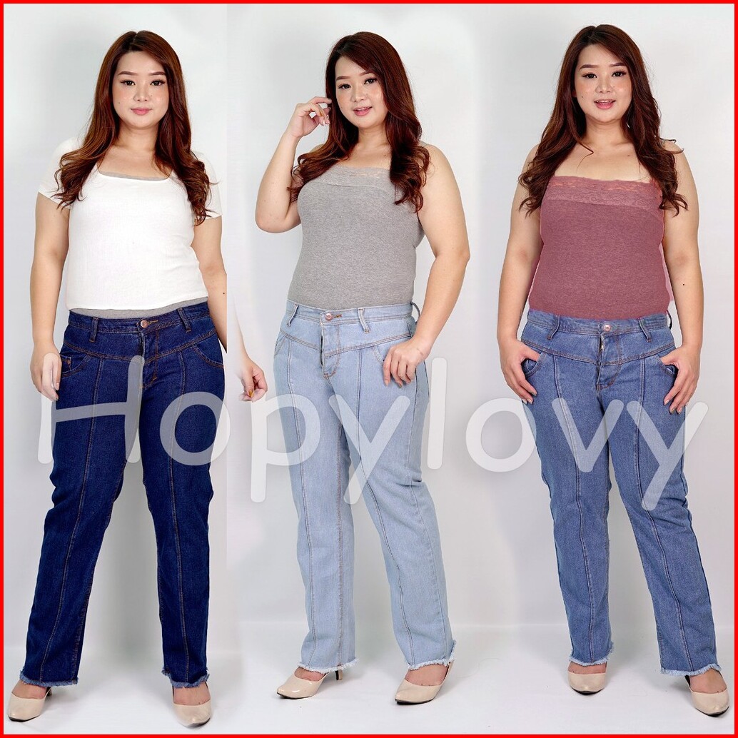 Hopylovy - Celana Boyfriend Jeans Ukuran Jumbo Wanita Unfinished Febiola