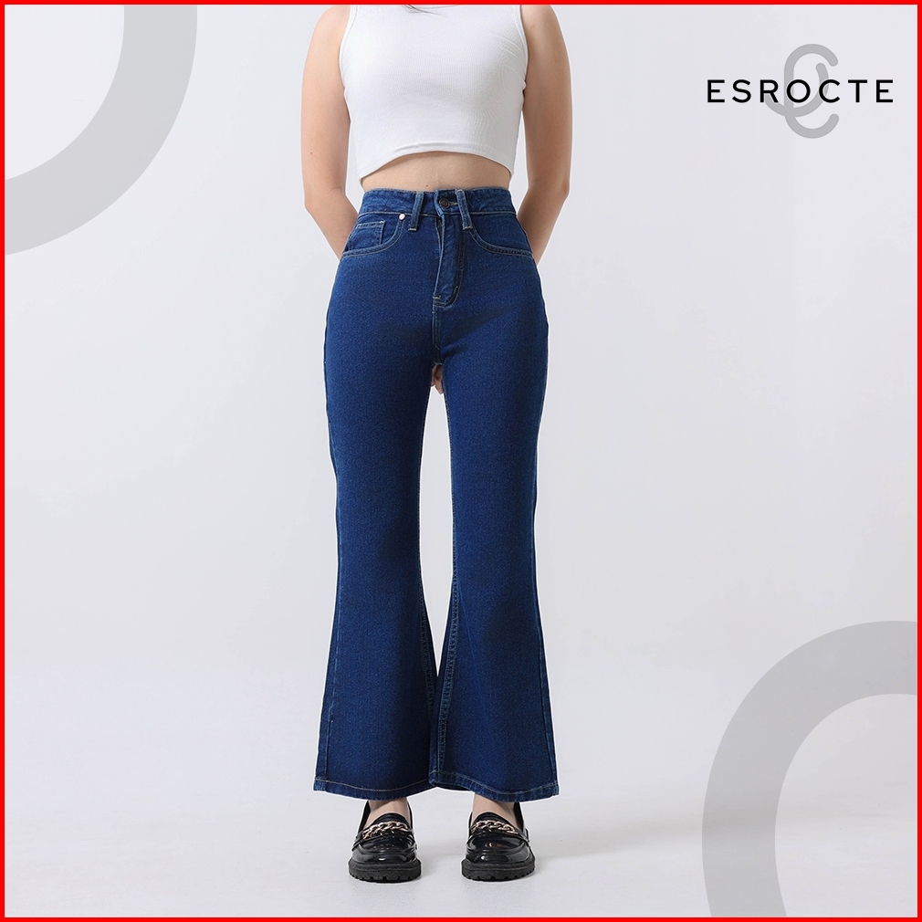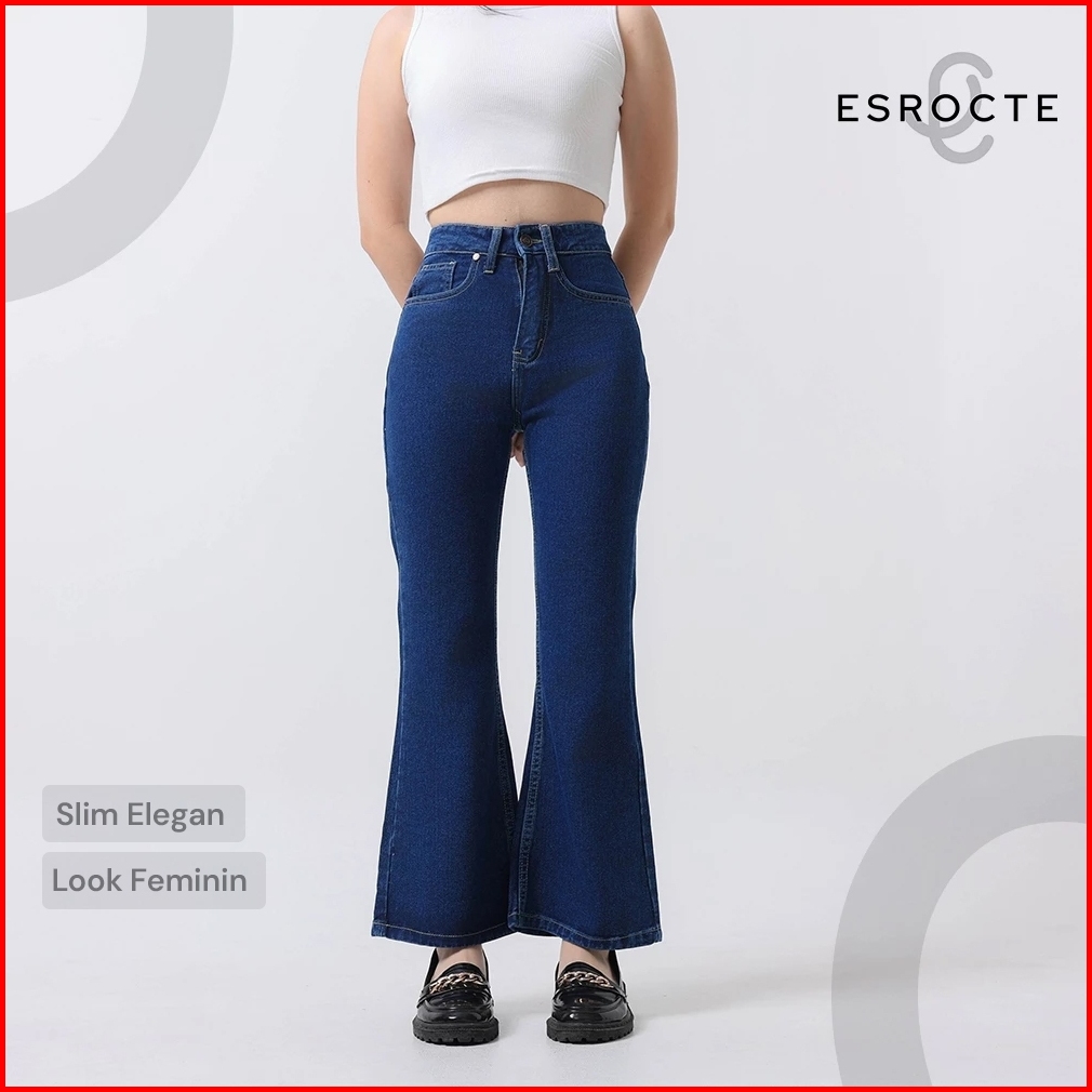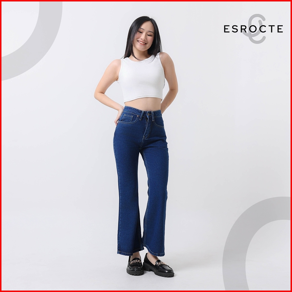 Esrocte Asha Pants Celana Cutbray Jeans High-waist Wanita Navy 2638