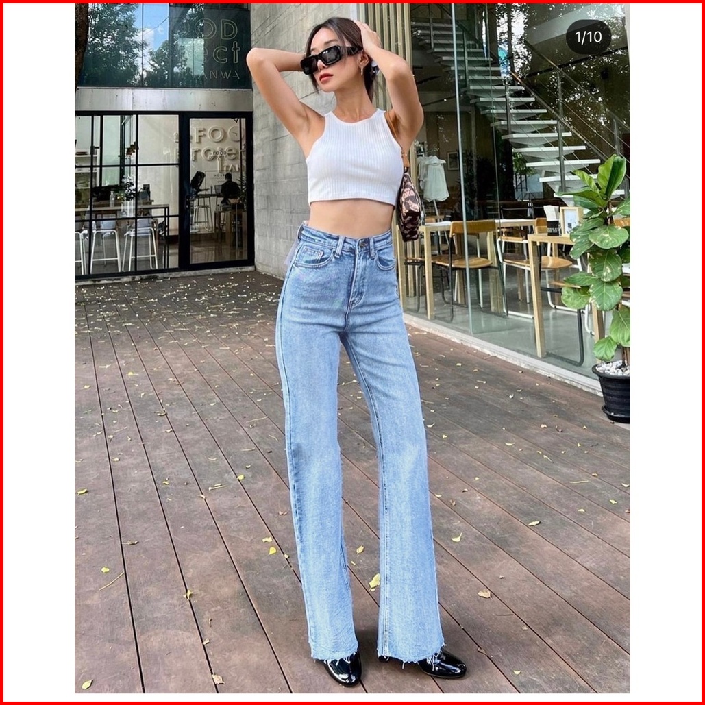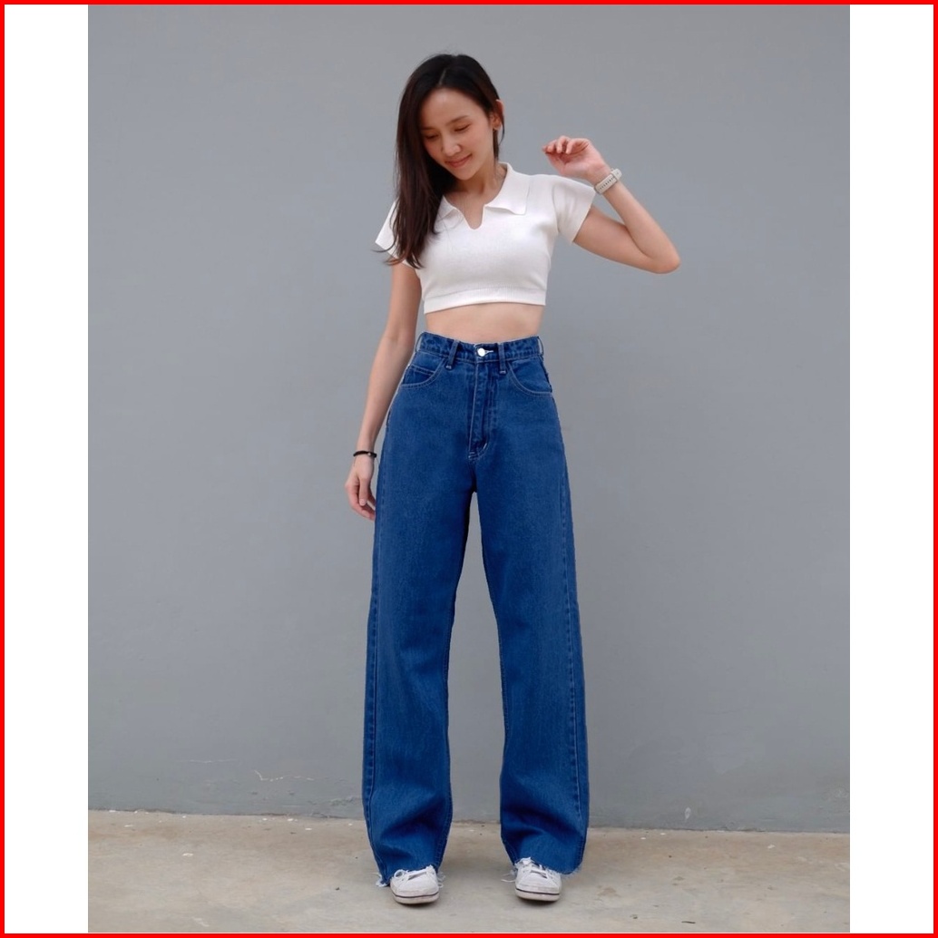 Fwr - Stella Highwaist Loose Jeans Unfinished Korean Style