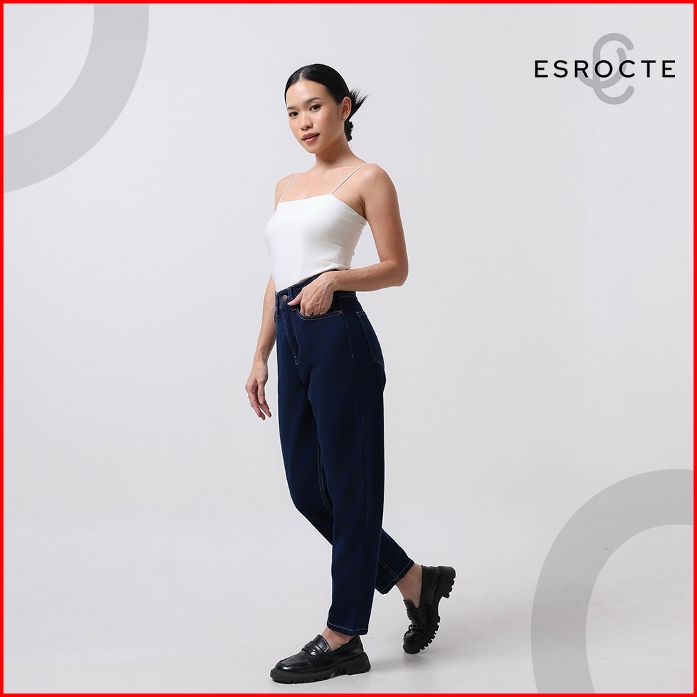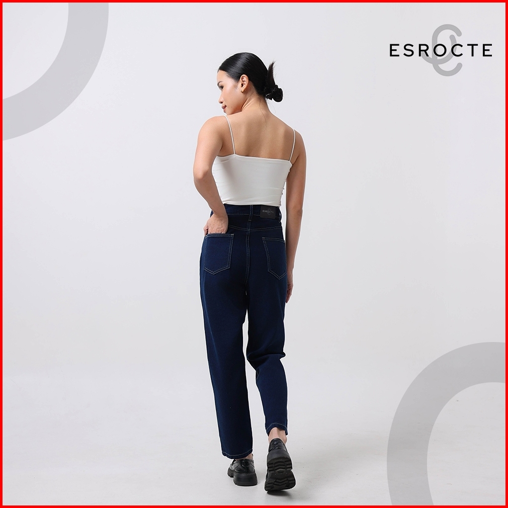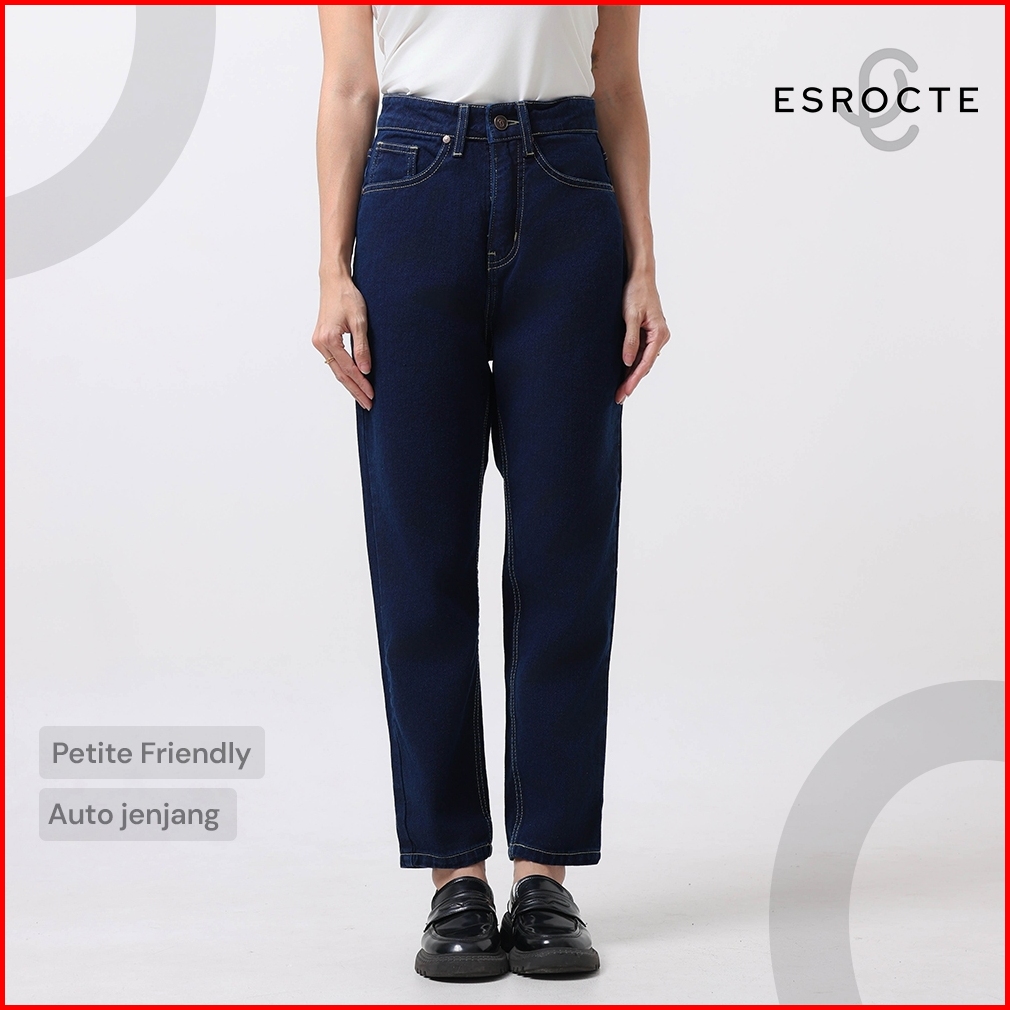 Esrocte Aurea Pants Celana Mom Jeans High-waist Wanita Navy Retro 2638