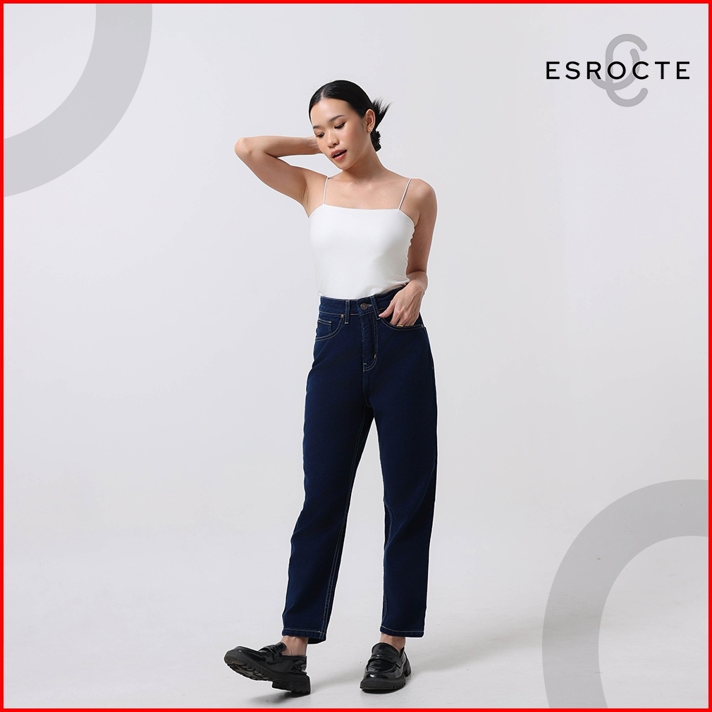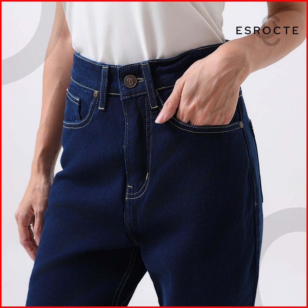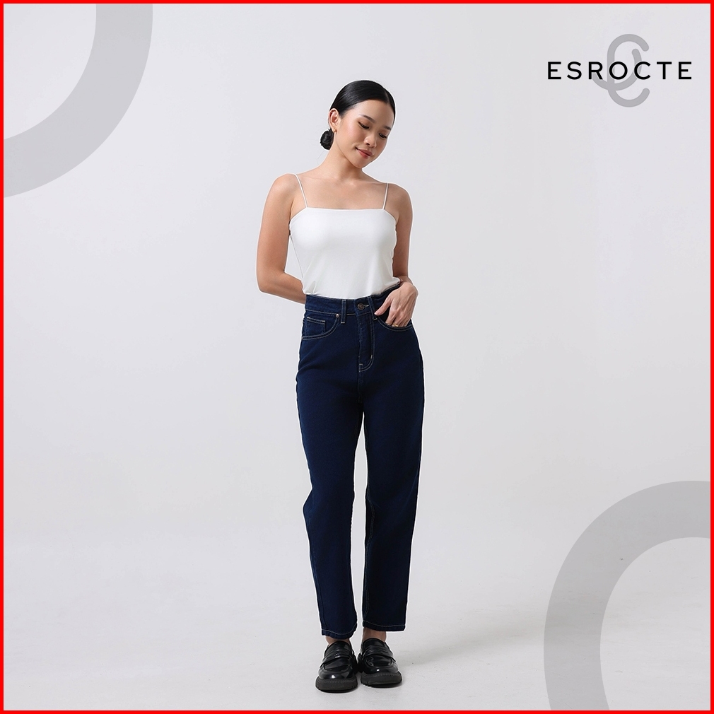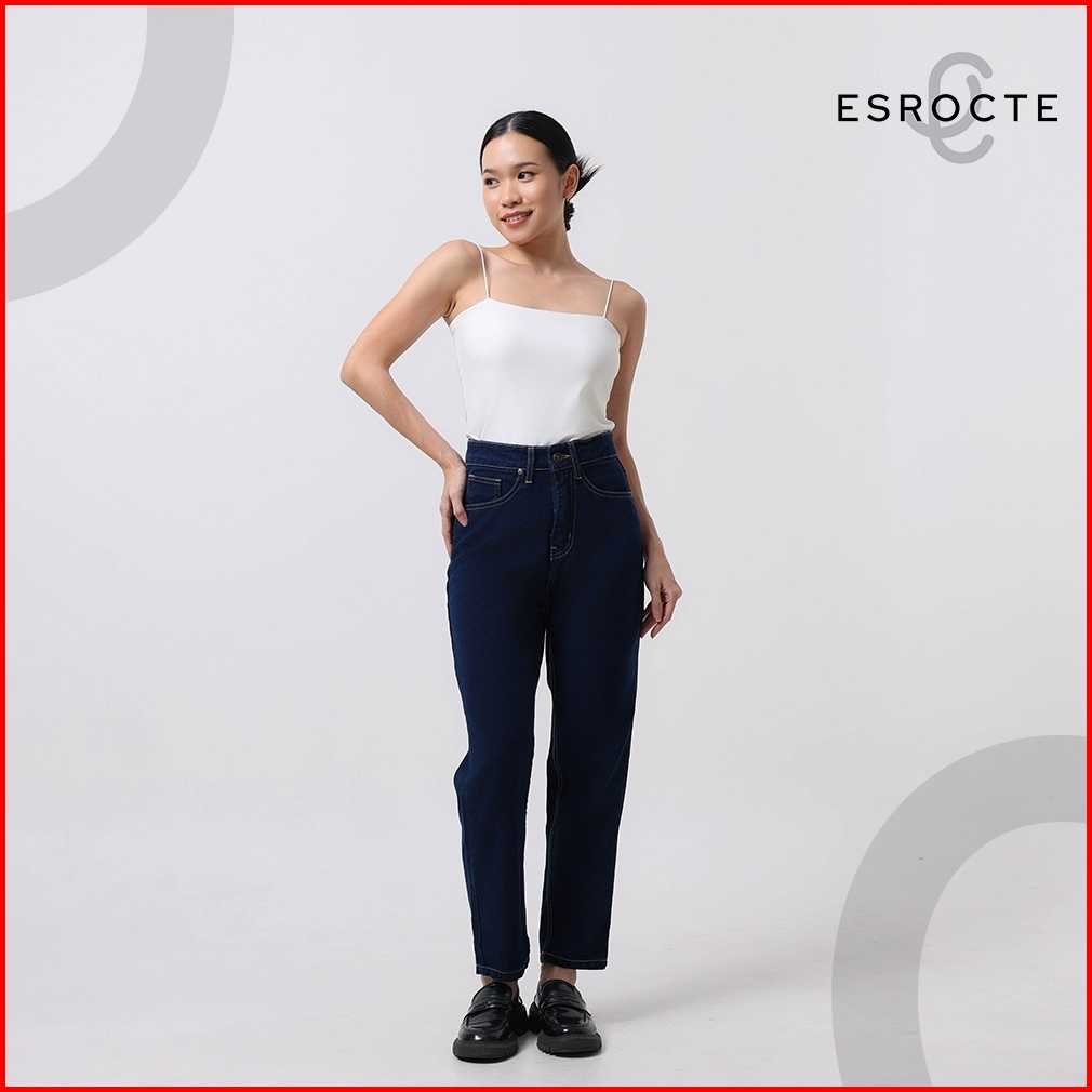 Esrocte Aurea Pants Celana Mom Jeans High-waist Wanita Navy Retro 2638