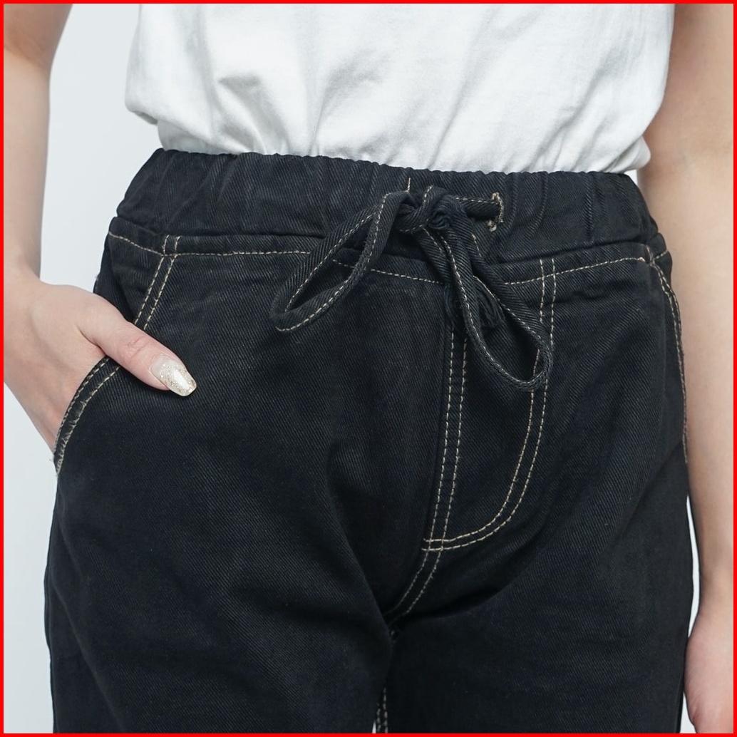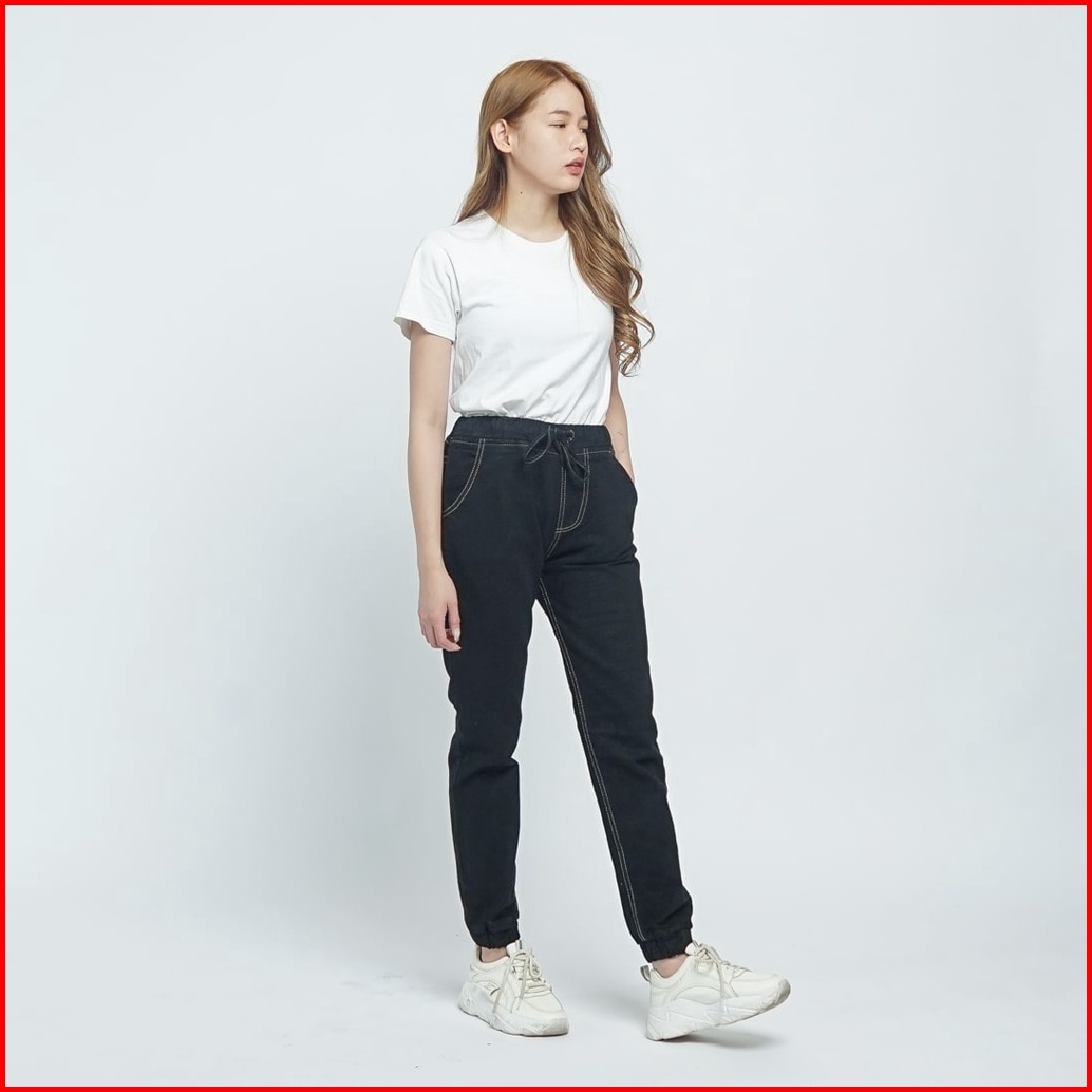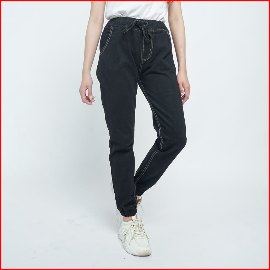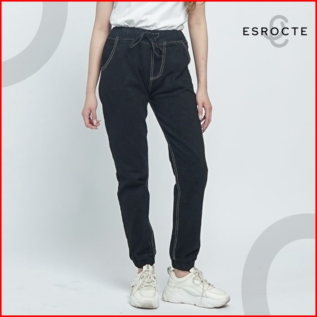 Esrocte Celana Jogger High Waist Jeans Wanita P05 - Hitam Clash 26-38