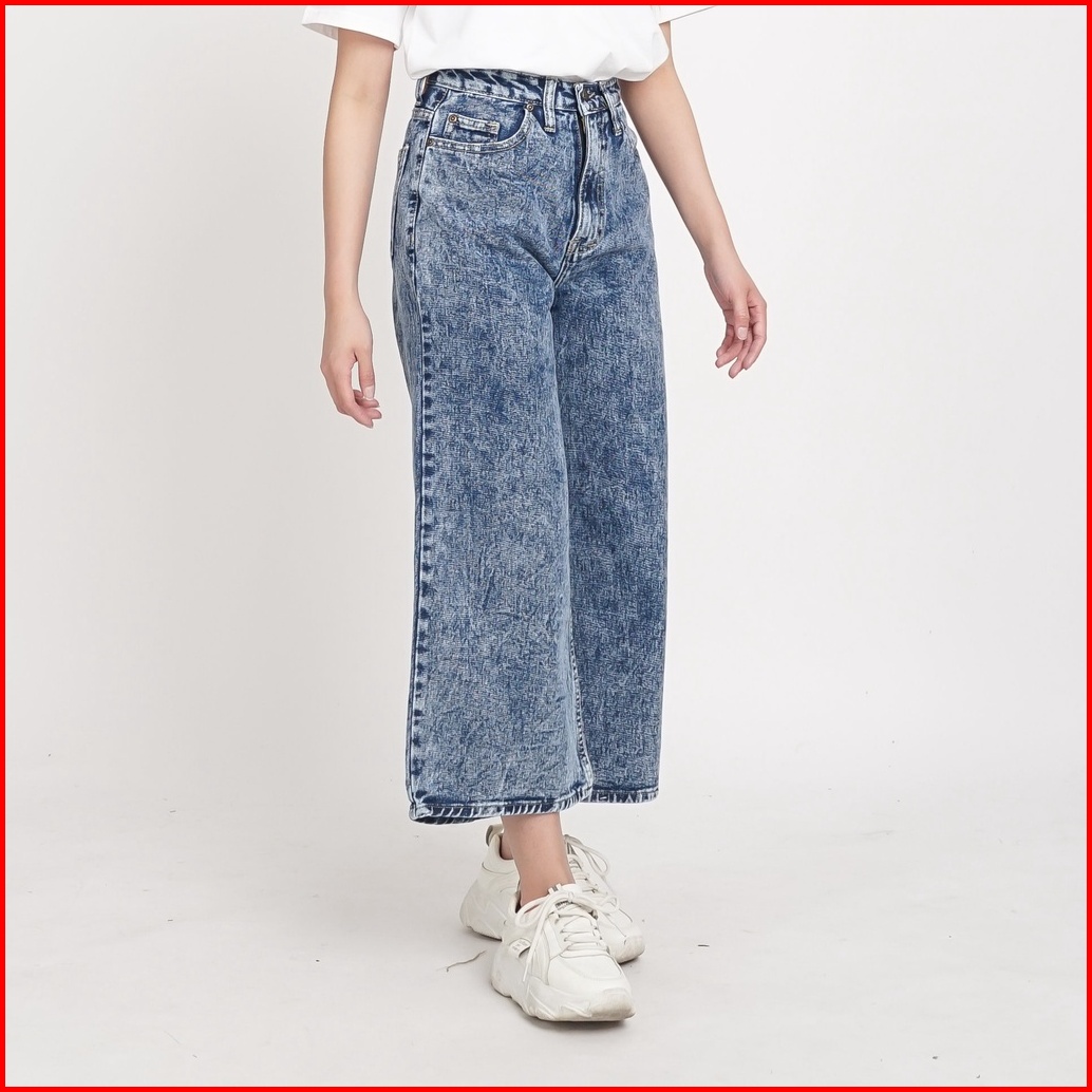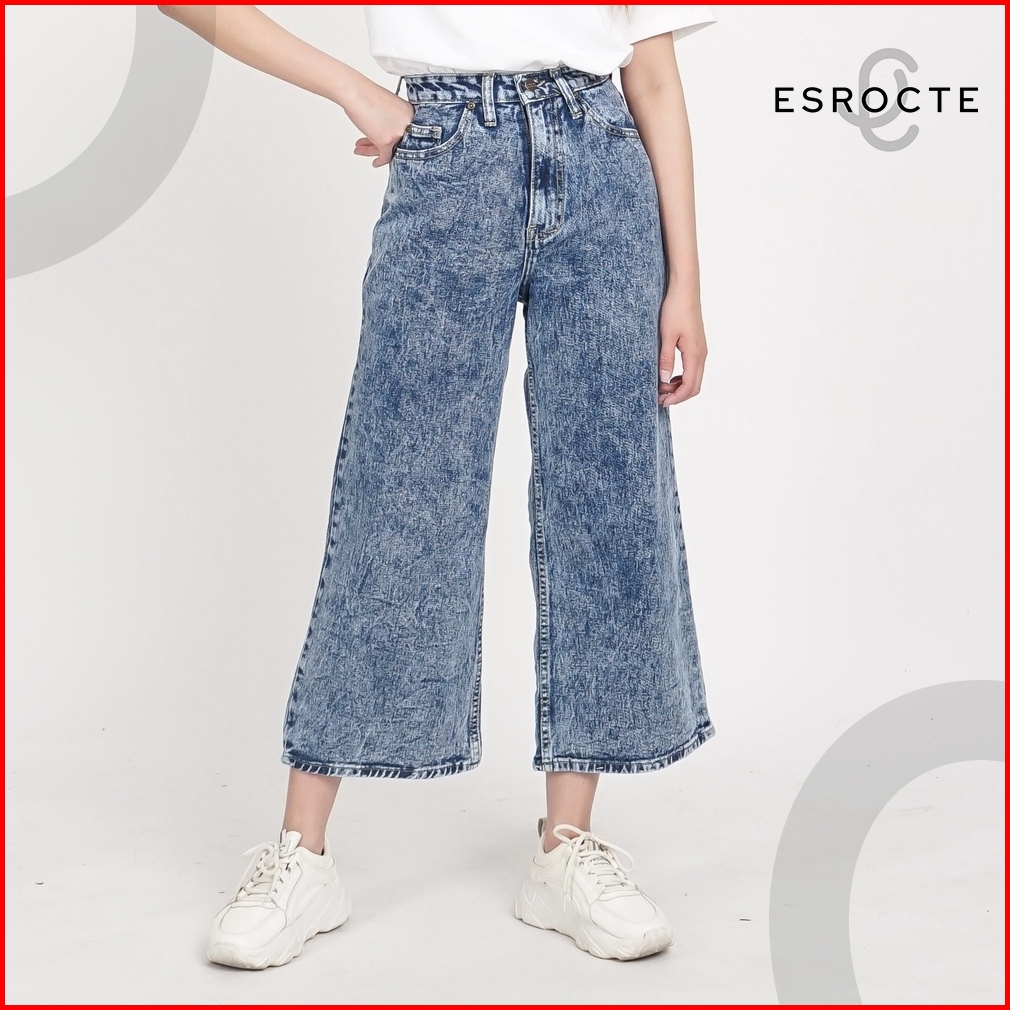 Esrocte Celana Kulot High Waist Jeans Wanita P01 - Blue Snow 26-38