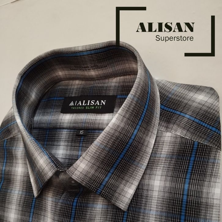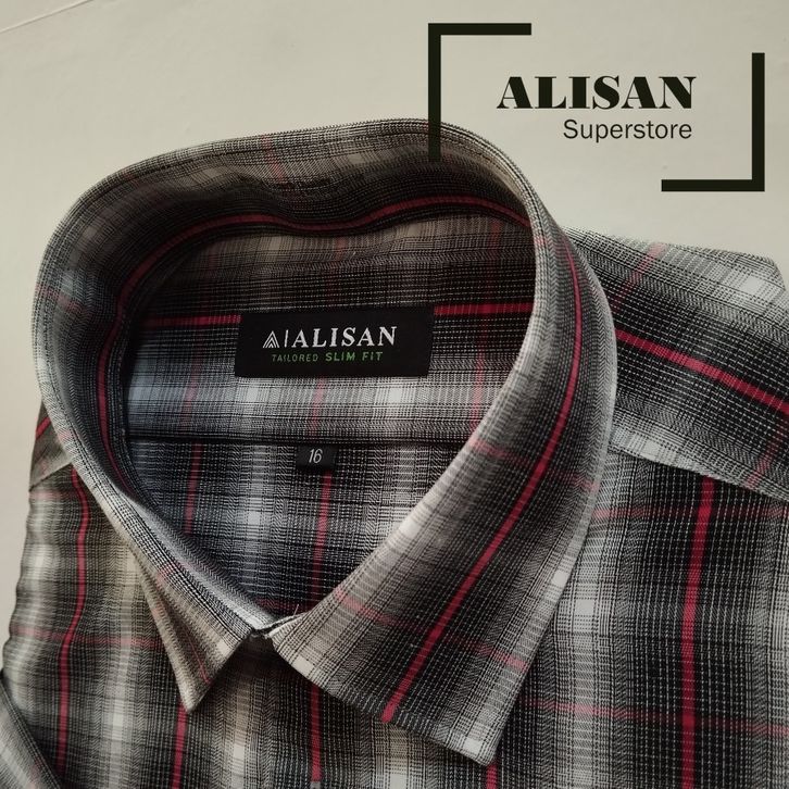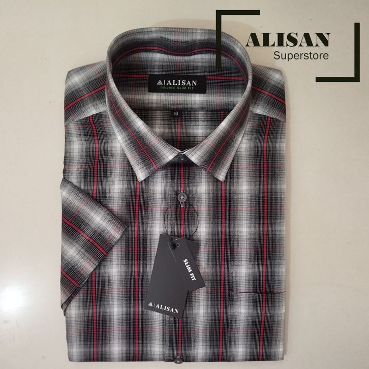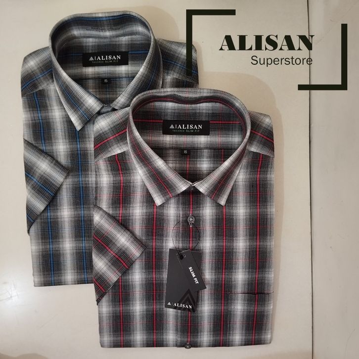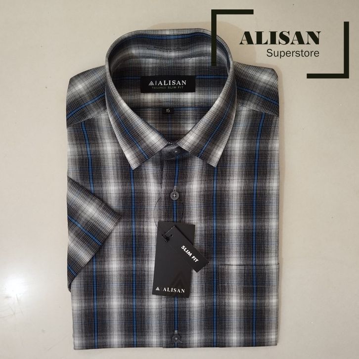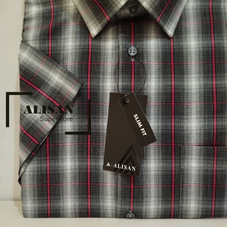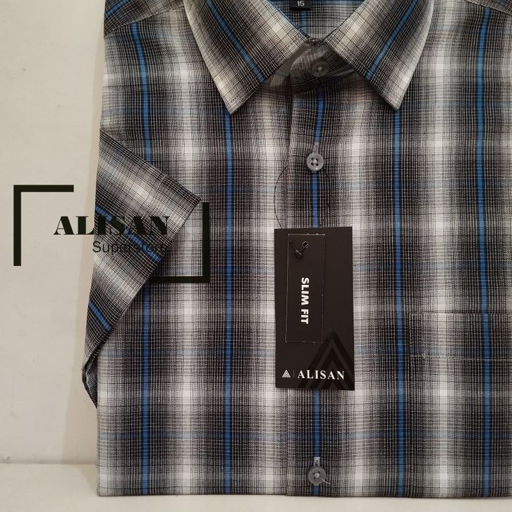 KEMEJA PRIA ALISAN MOTIF SALUR KOTAK LENGAN PENDEK SLIMFIT