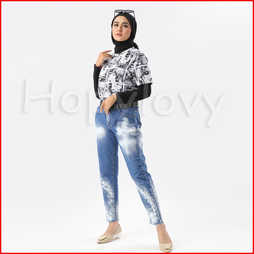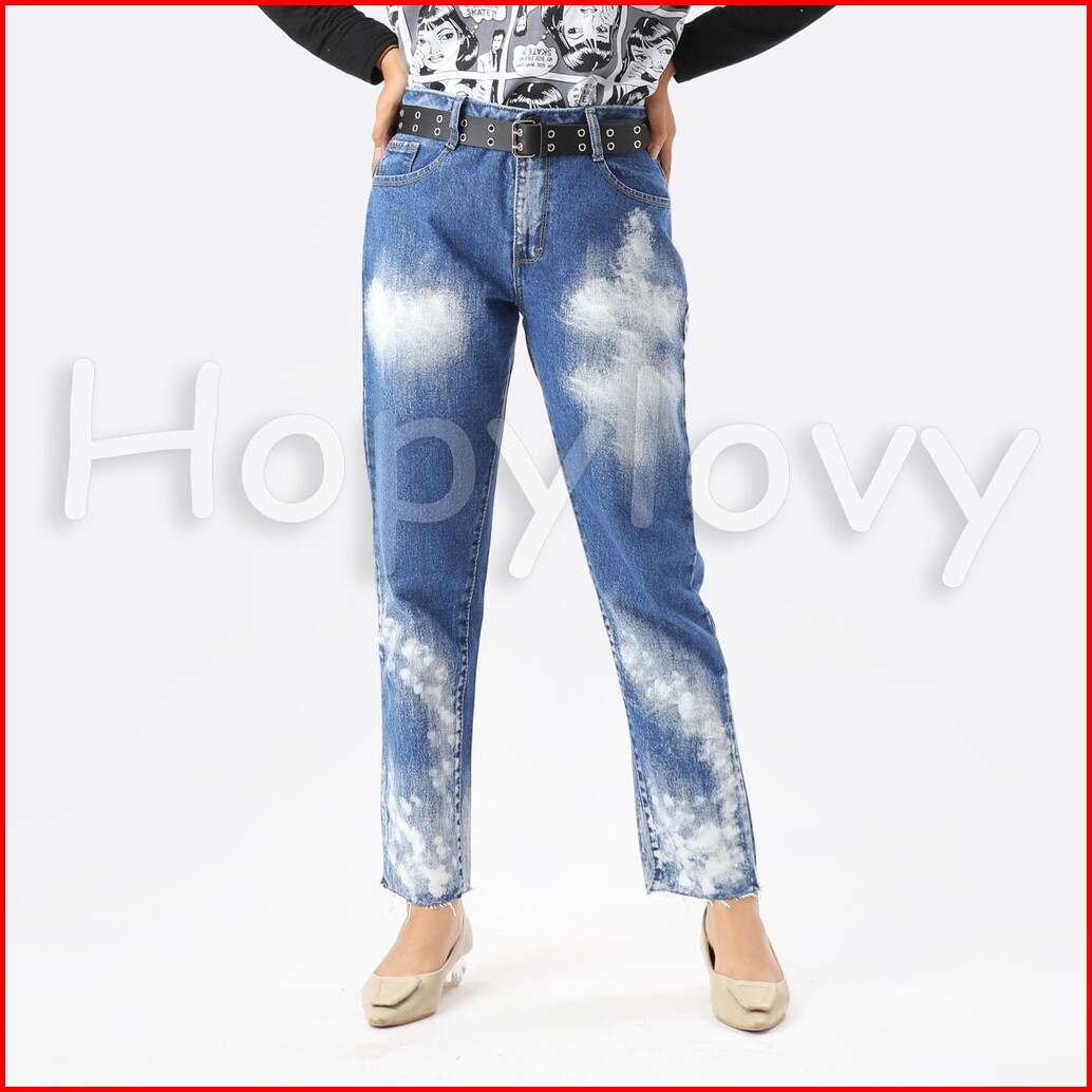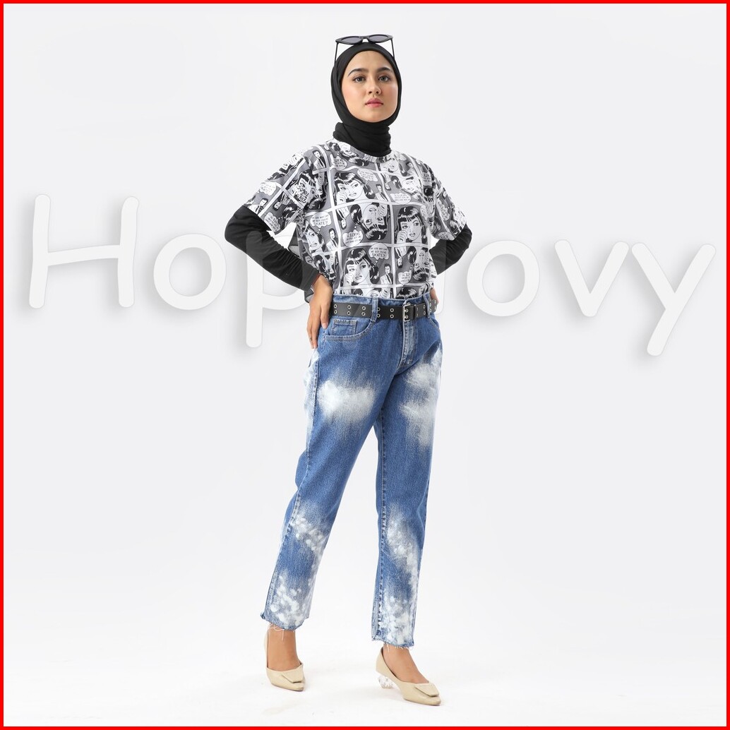 Hopylovy - Celana Boyfriend Jeans Wanita Bf Tie Dye White Stain Avrina